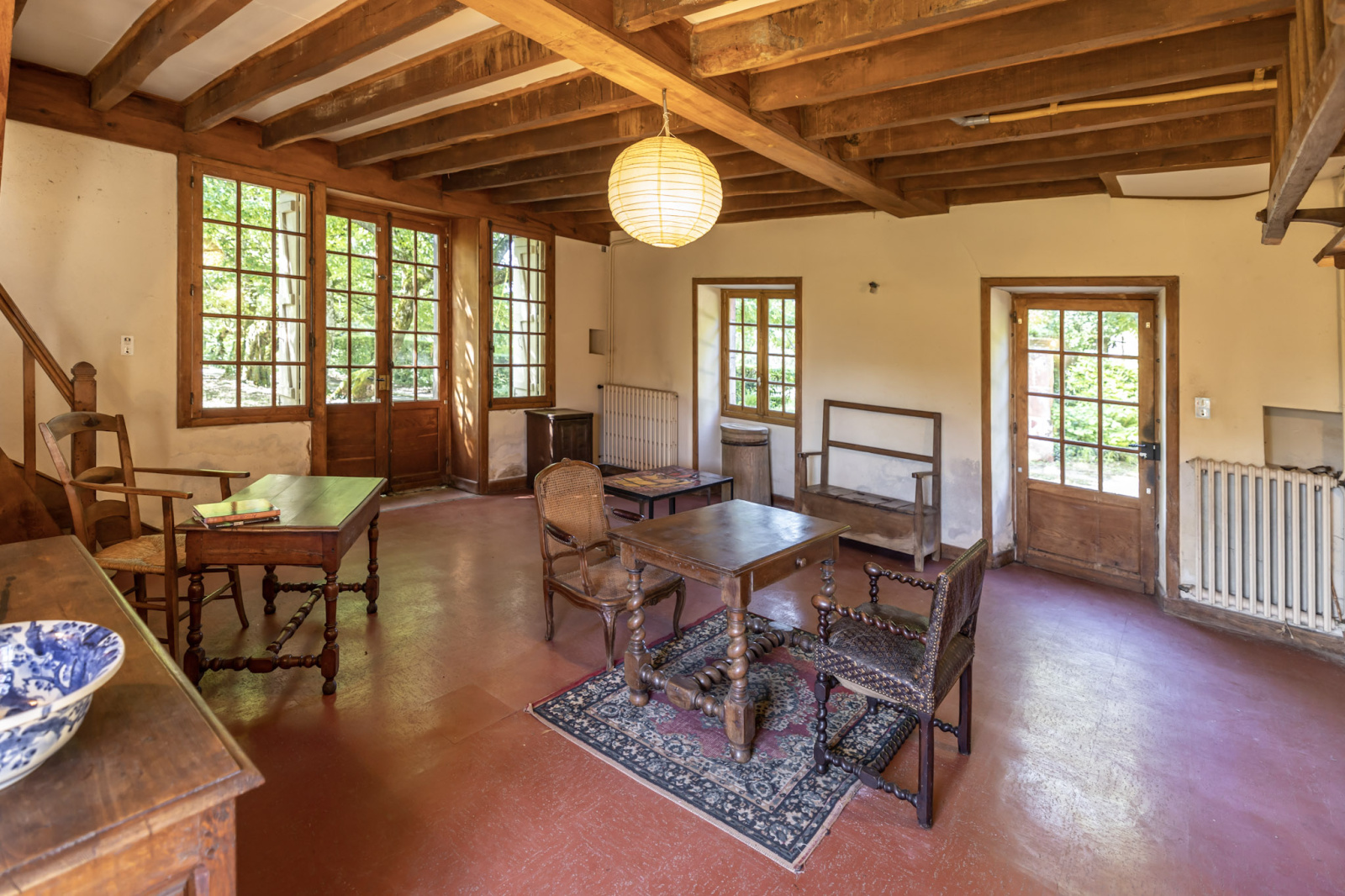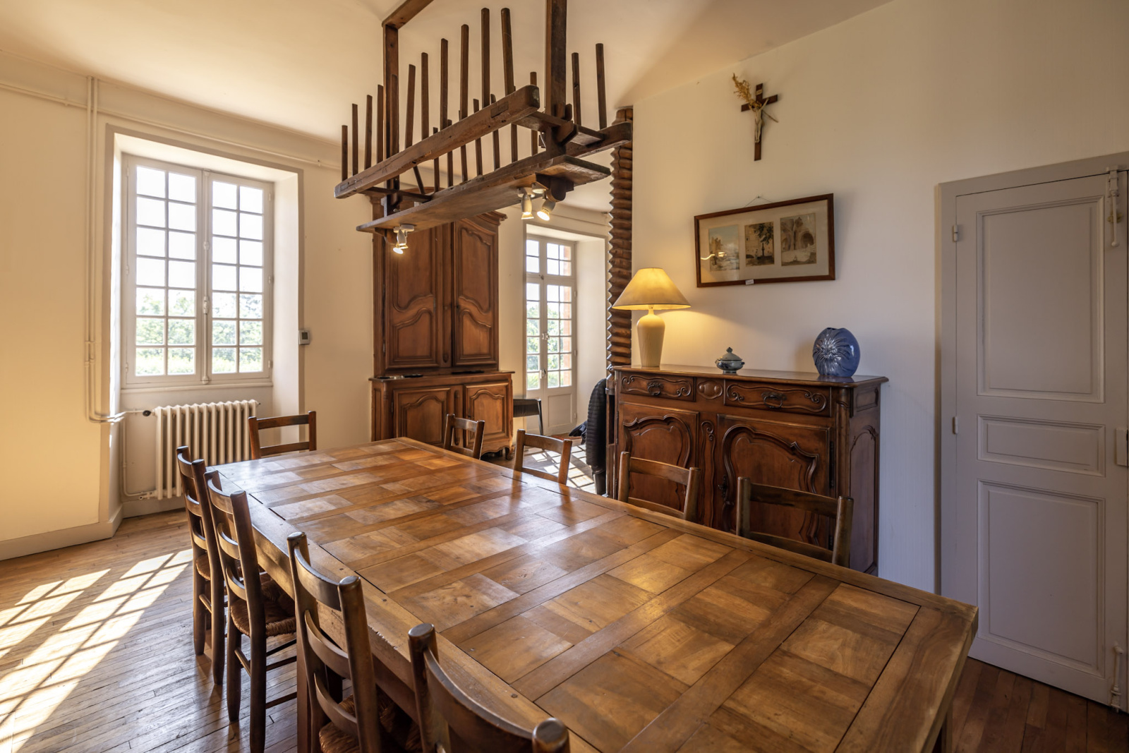 - le séjour (salle à manger avec son cantou) et petit salon ouvrant sur la terrasse enherbée côté Est.