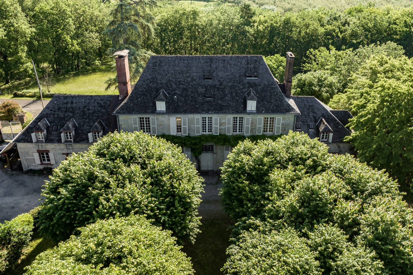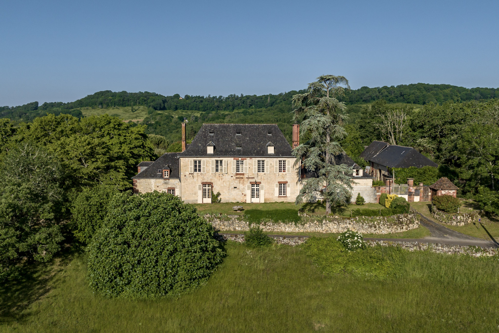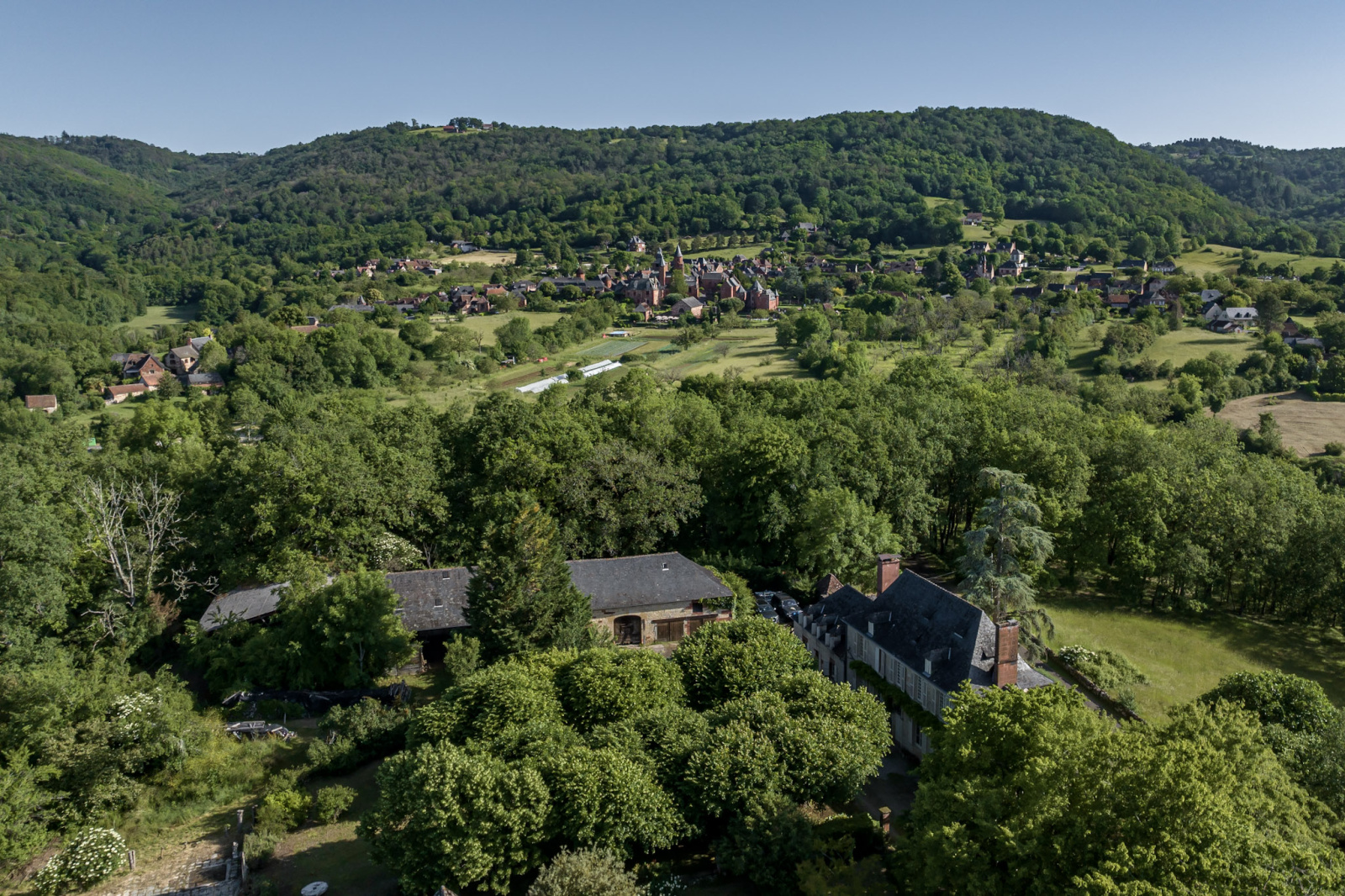 Bien que située à 500 mètres à vol d'oiseau du bourg, la propriété n'a aucun voisin, ses propres terres qui l'entourent lui offrant ce privilège rare.