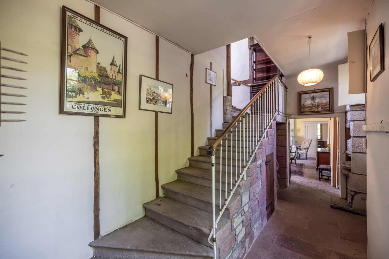 En rez-de-jardin, une entrée avec escalier en pierre distribue :