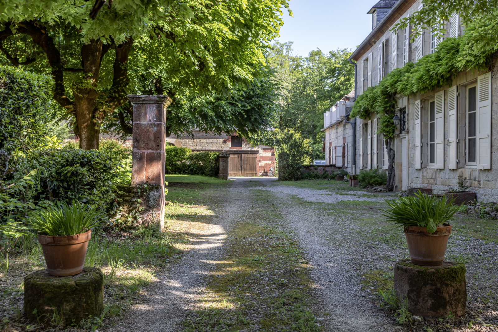 Une allée centrale sous une voûte de charmes centenaires, une terrasse enherbée baignée par le soleil levant, une allée de vieux tilleuls conduisant à l'espace détente (ancienne piscine à restaurer), un jardin potager entouré de murets et de haies, dont l'entrée, gardée par des piles de pierre, souligne encore et encore le caractère noble de cette propriété remarquable et de ce lieu de vie unique.