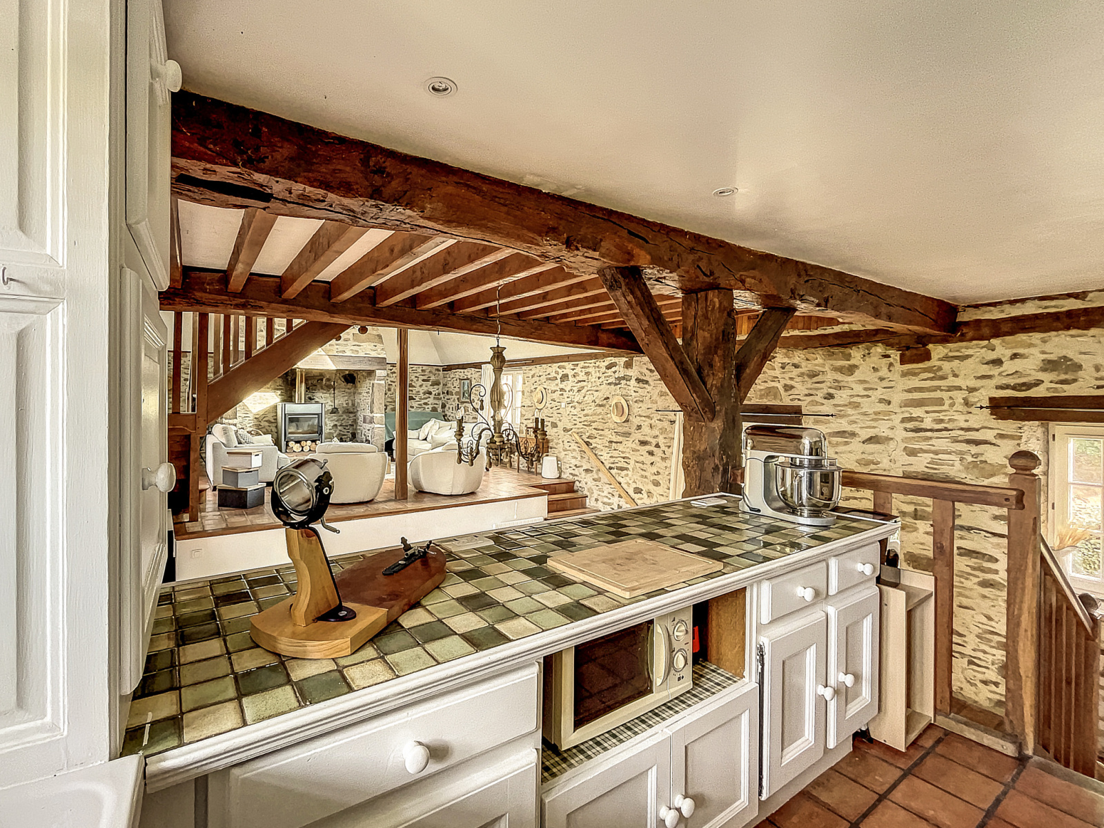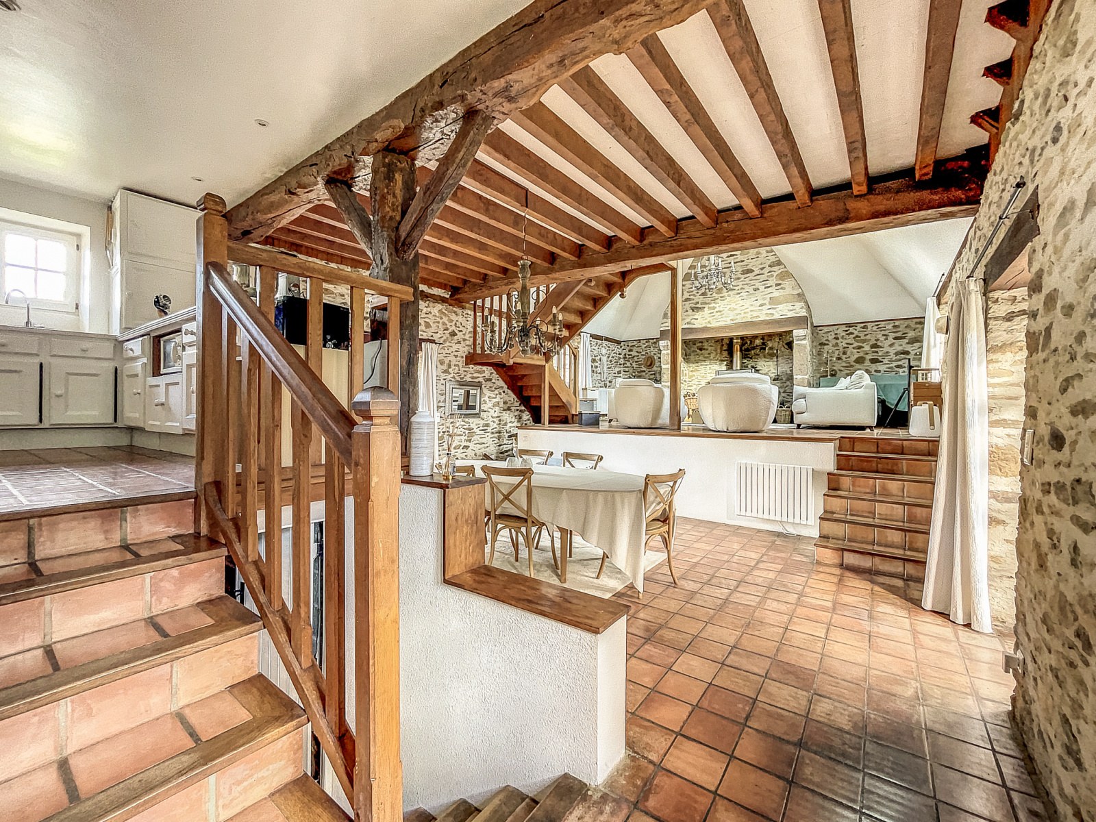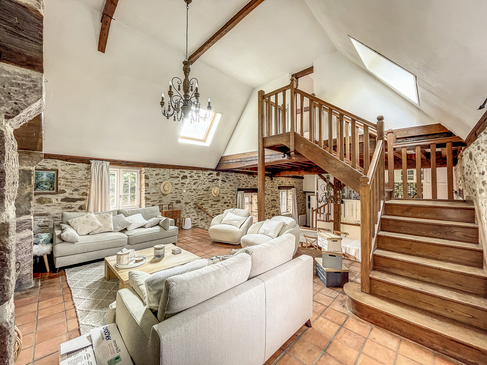 Construite au cours du XIXème siècle dans le style des anciennes fermettes Corrézienne, la maison offre une surface habitable de 150m² et s'organise en deux espaces de vie distincts ayant si on le souhaite, leur propre entrée. Le premier espace se compose d'une grande pièce de vie sur un demi-niveau formée par une salle à manger, une cuisine ouverte aménagée et un grand salon orné d'une cheminée monumentale dans laquelle, pour des raisons de confort, un poêle à bois a été intégré. Cet espace est également composé d'une chambre, d'une salle de bain et à l'étage d'une chambre avec salle d’eau, dressing et WC.