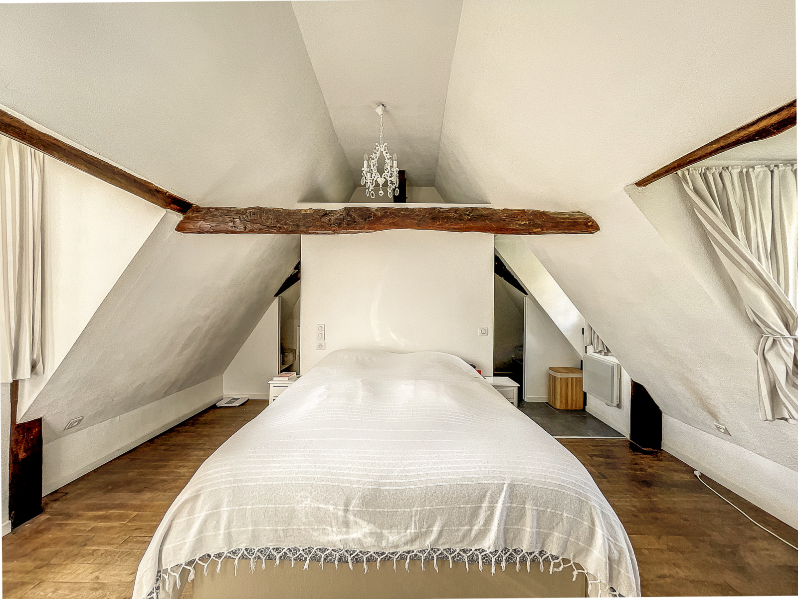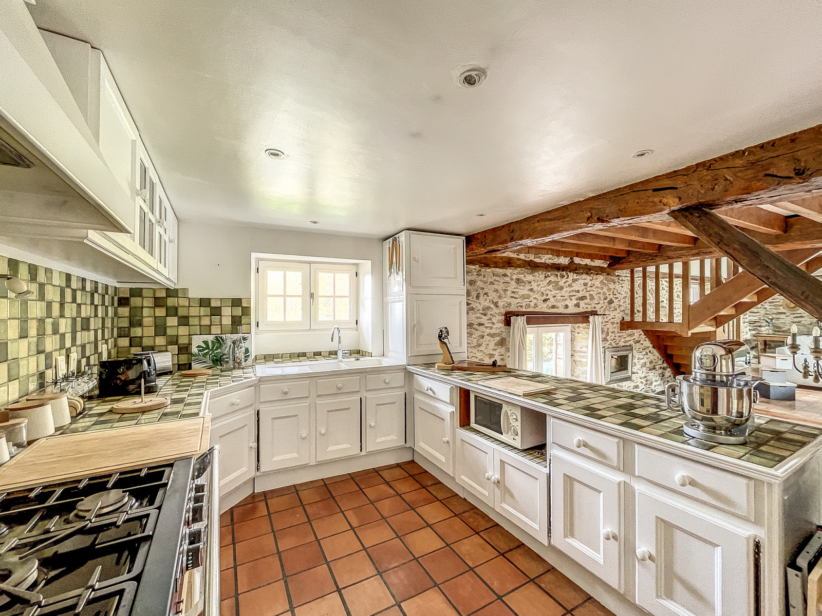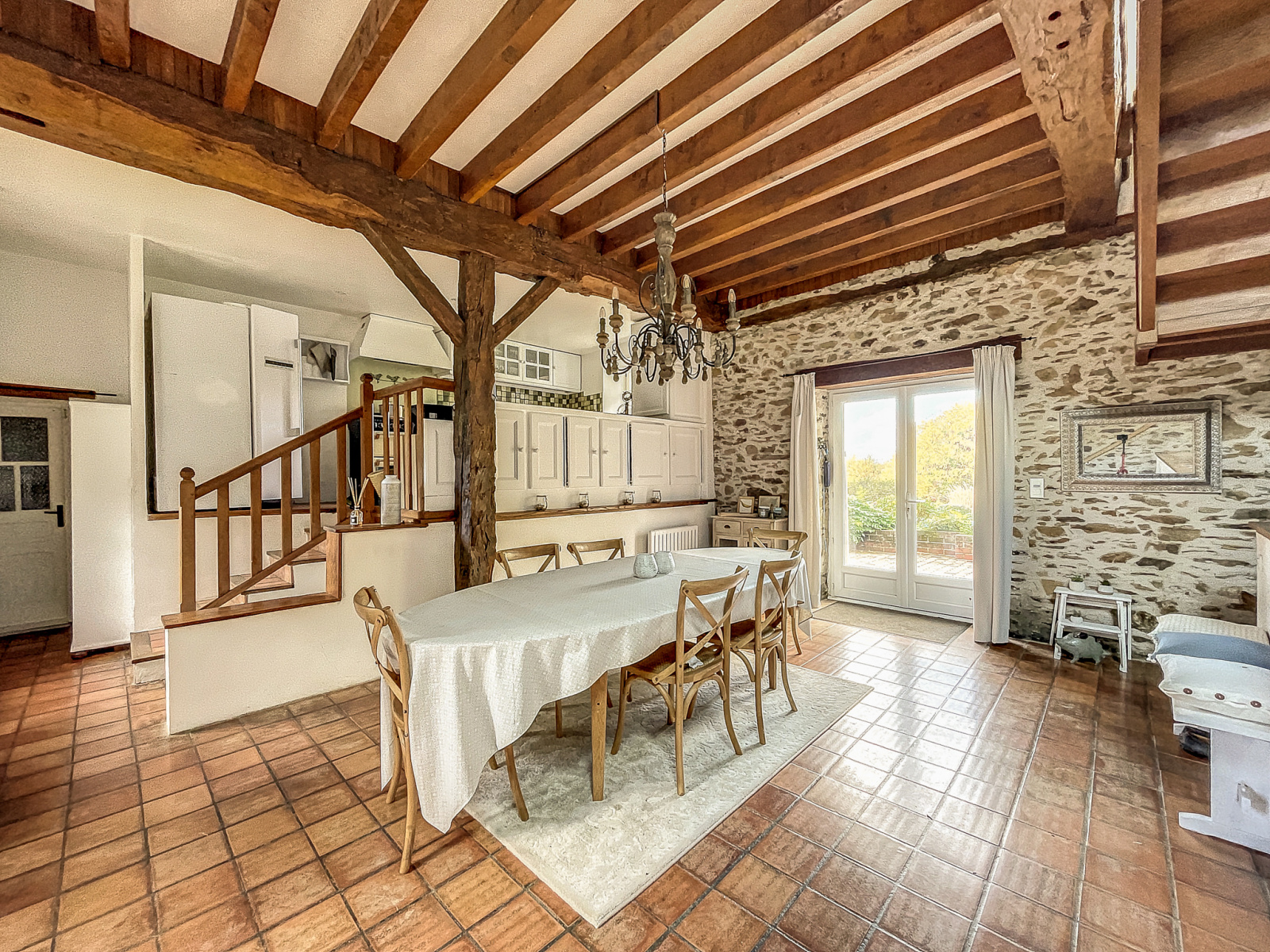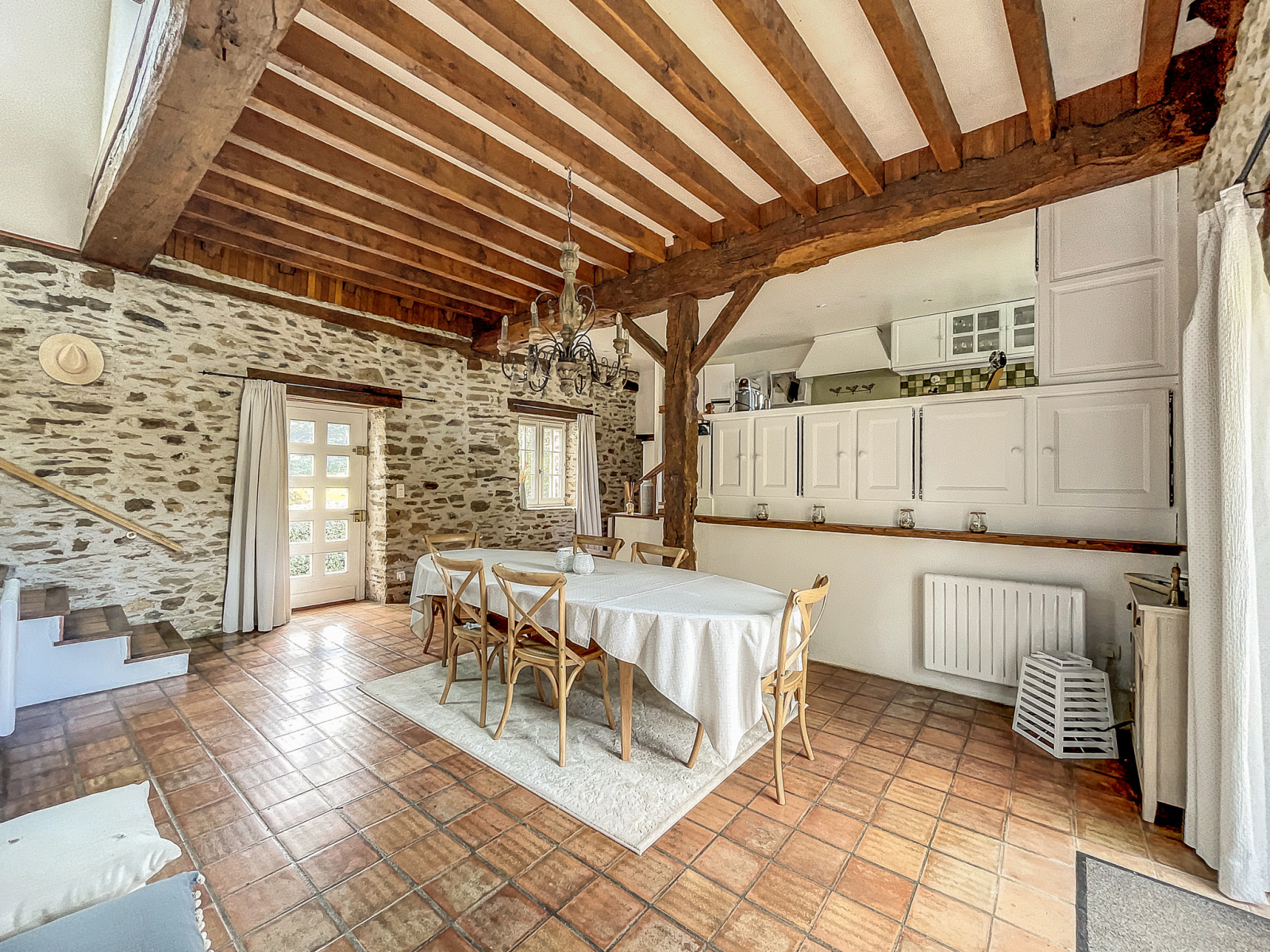 Construite au cours du XIXème siècle dans le style des anciennes fermettes Corrézienne, la maison offre une surface habitable de 150m² et s'organise en deux espaces de vie distincts ayant si on le souhaite, leur propre entrée. Le premier espace se compose d'une grande pièce de vie sur un demi-niveau formée par une salle à manger, une cuisine ouverte aménagée et un grand salon orné d'une cheminée monumentale dans laquelle, pour des raisons de confort, un poêle à bois a été intégré. Cet espace est également composé d'une chambre, d'une salle de bain et à l'étage d'une chambre avec salle d’eau, dressing et WC.