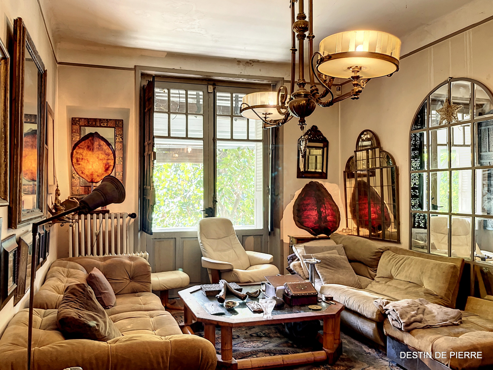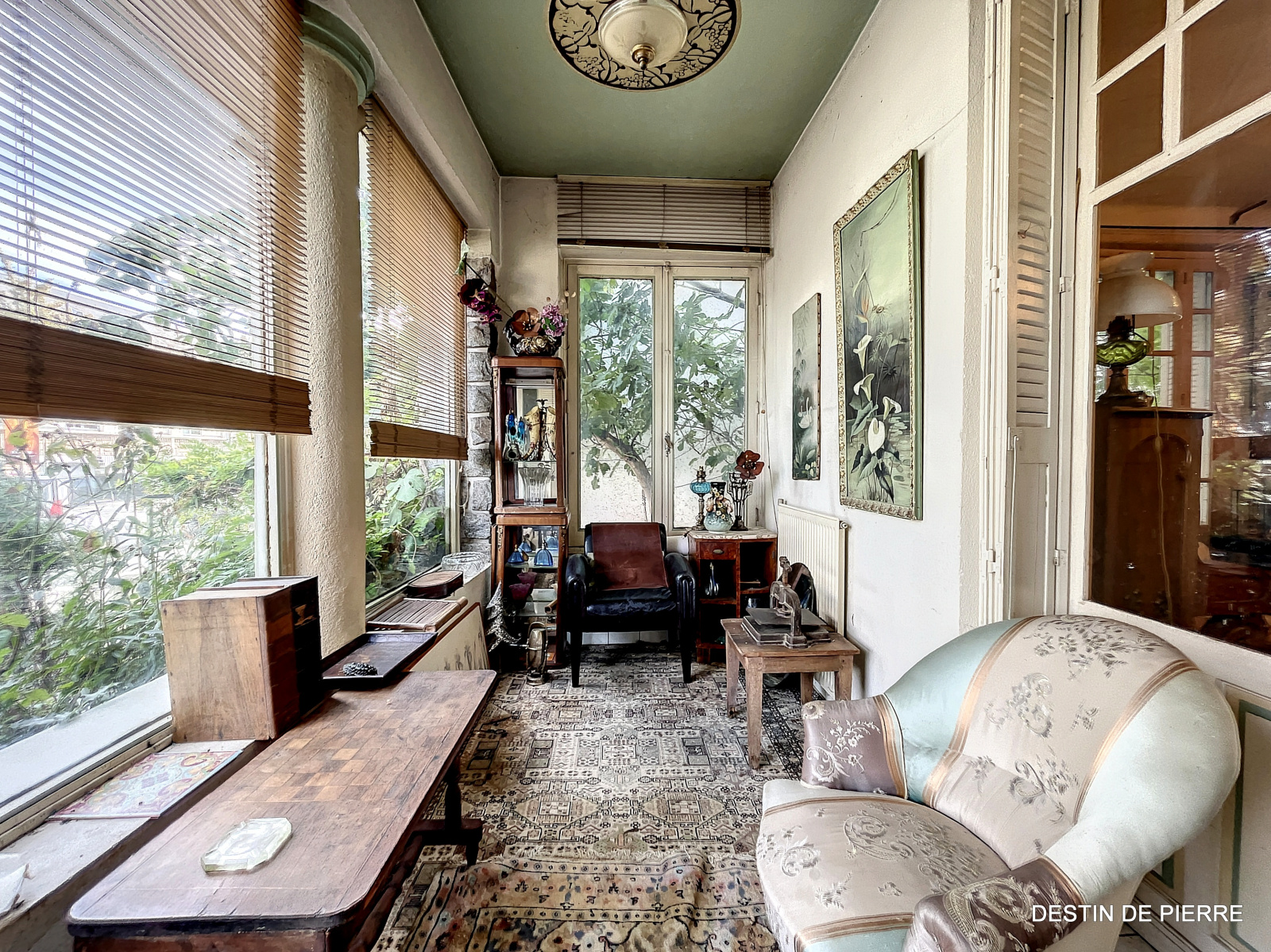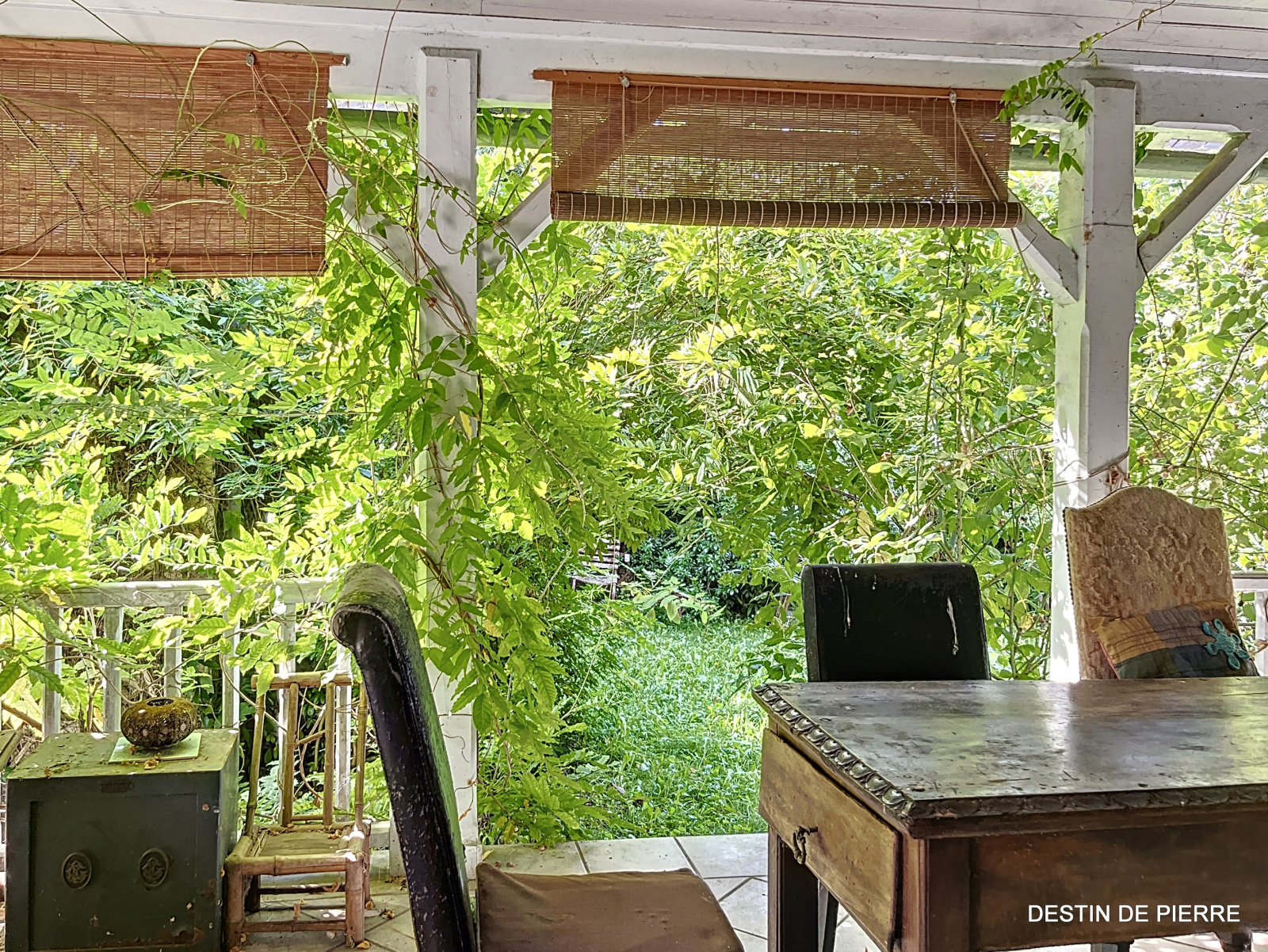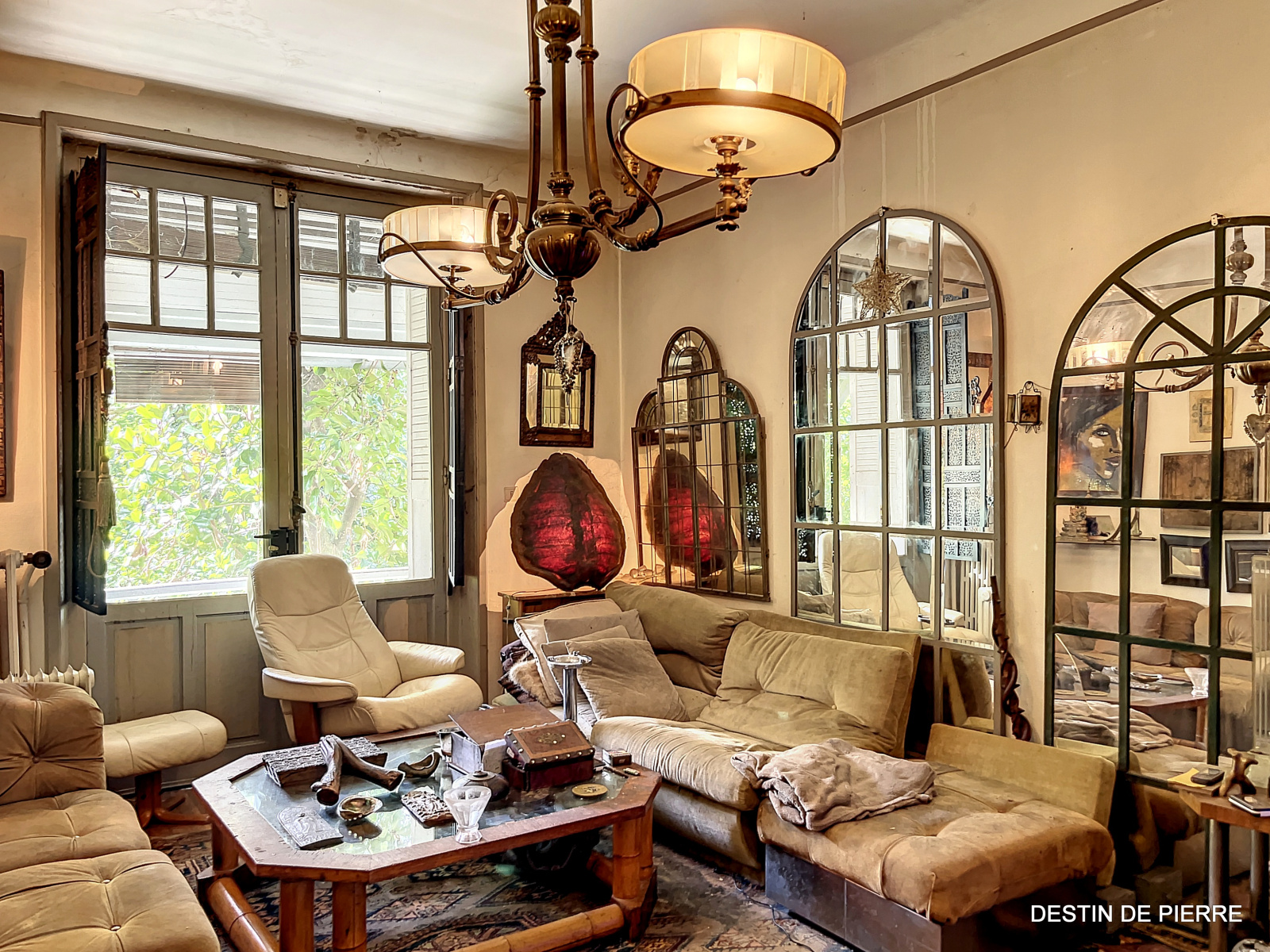 - Un espace salon avec vue sur le jardin.