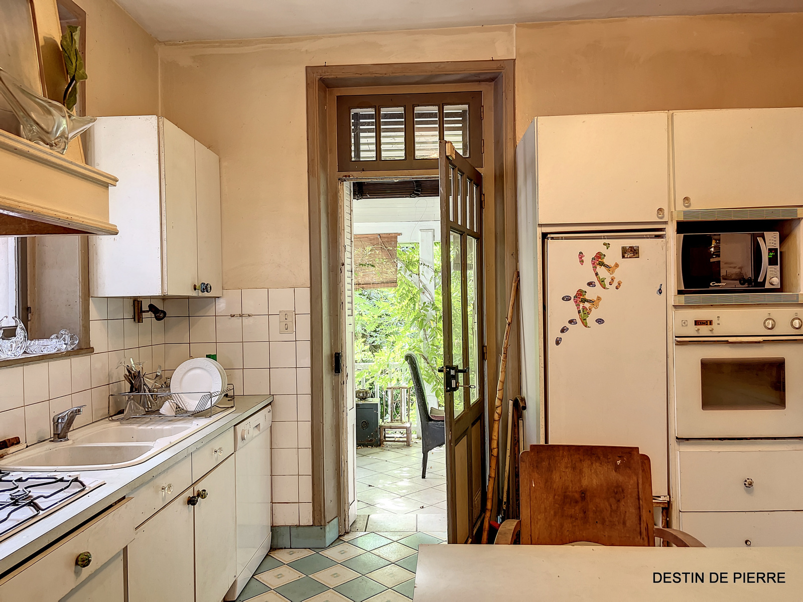 - Une cuisine aménagée donnant accès sur une terrasse côté jardin.