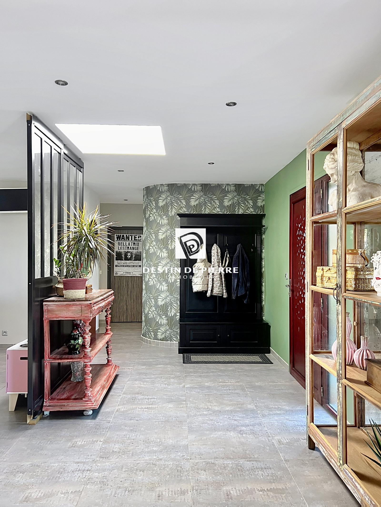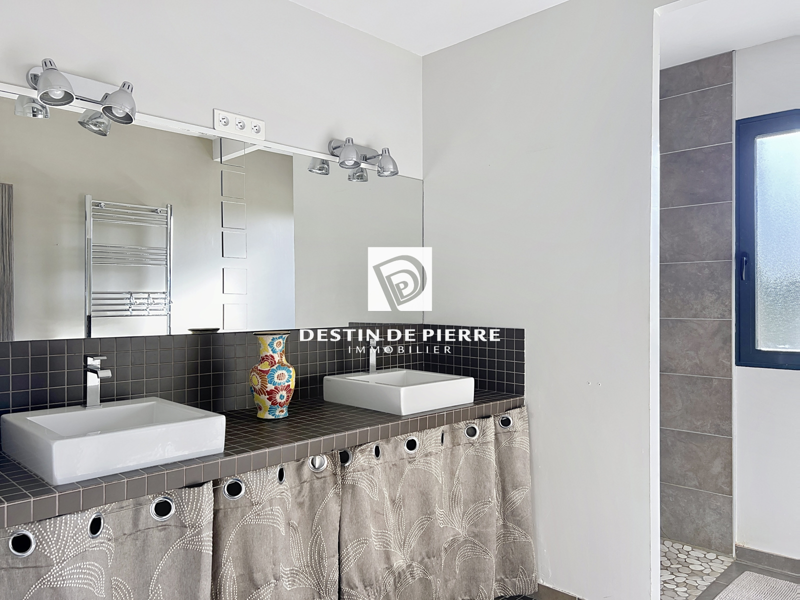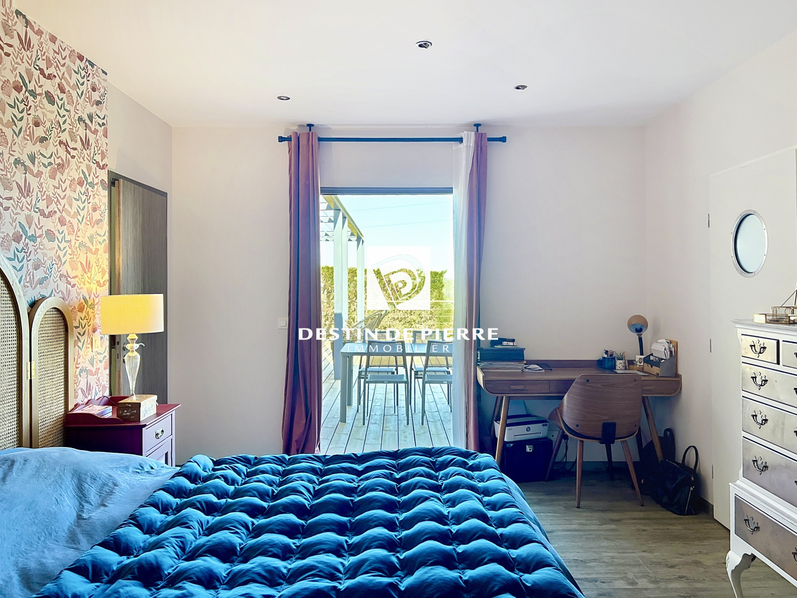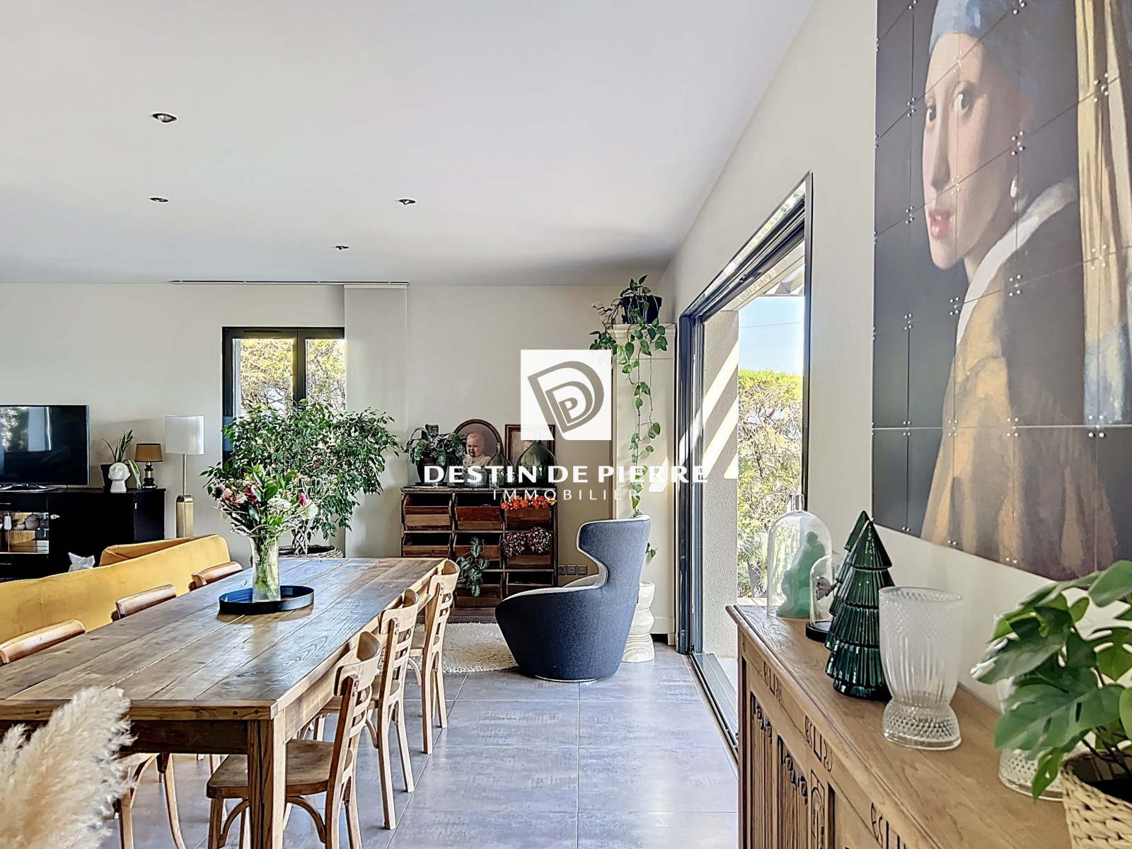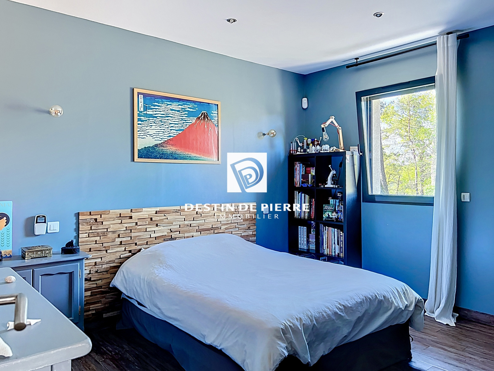 Édifiée sur un terrain en pente douce, cette maison à l’architecture moderne, proposant 180 m² habitables, séduit dès l’entrée par ses volumes ouverts et sa luminosité. Le vaste salon/séjour, baigné de lumière grâce à ses baies vitrées à galandage, s’ouvre sur une grande terrasse en bois de 82 m², partiellement ombragée par une élégante pergola en brise-soleil aluminium de 45 m², offrant un prolongement idéal des espaces de vie intérieurs vers l’extérieur afin de profiter de la vue dégagée qui change au fil des saisons.