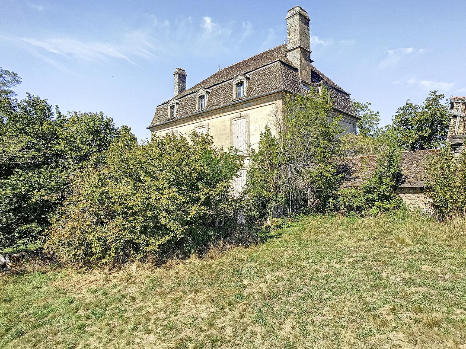 Le domaine d'environ 23 hectares est implanté sur un plateau dominant la Vallée de la Maronne et est constitué d'environ 1.2 hectares de prairie et 22 hectares de forêts. Il offre donc un cadre de vie exceptionnel dans un environnement verdoyant et giboyeux. L'accès à la propriété s'effectue par une grande allée menant à la maison principale et aux dépendances entourées du parc arboré de différents fruitiers. Le parc est constitué de différents espaces, comme la terrasse suspendue en façade de la maison de maître, ou les abords de l'ancien four à pain et l'ancienne serbe.