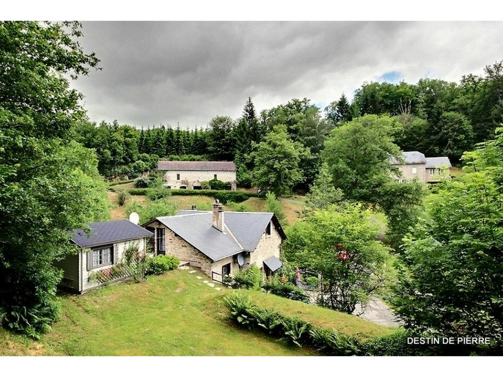 Agence immobilière spécialisée dans la transaction de biens uniques, vous propose à la vente un domaine d'exception de plus de 27 hectares composé de forêt, de ruisseaux, étang et de belles bâtisses en pierres de pays.