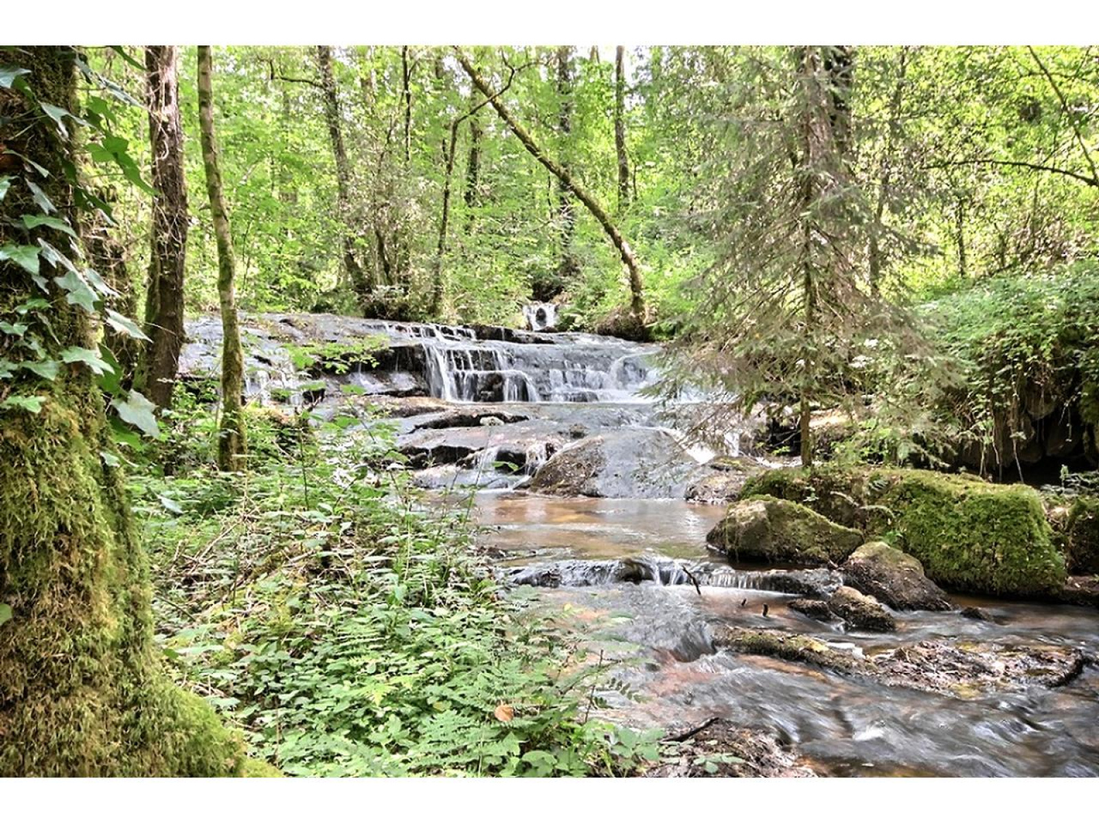 Ce lieu de vie est implanté au milieu de sa forêt. Les 27 hectares de ce domaine sont constitués de forêt de différentes essences, d'un étang, d'un ruisseau, d'une cascade d'eau, d'un terrain de tennis, d'un potager et de trois bâtisses authentiques en pierres.