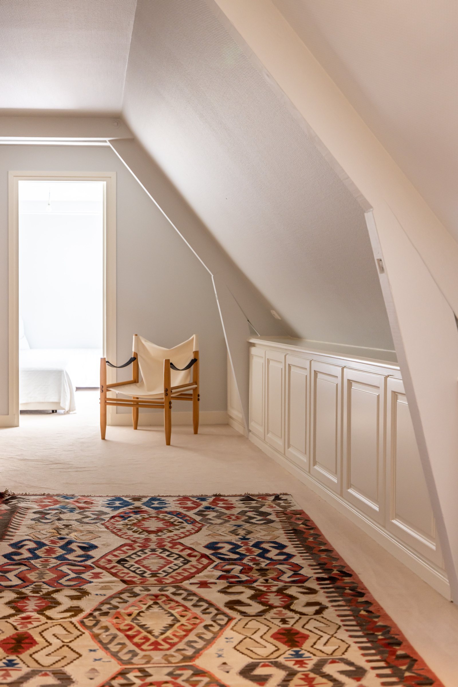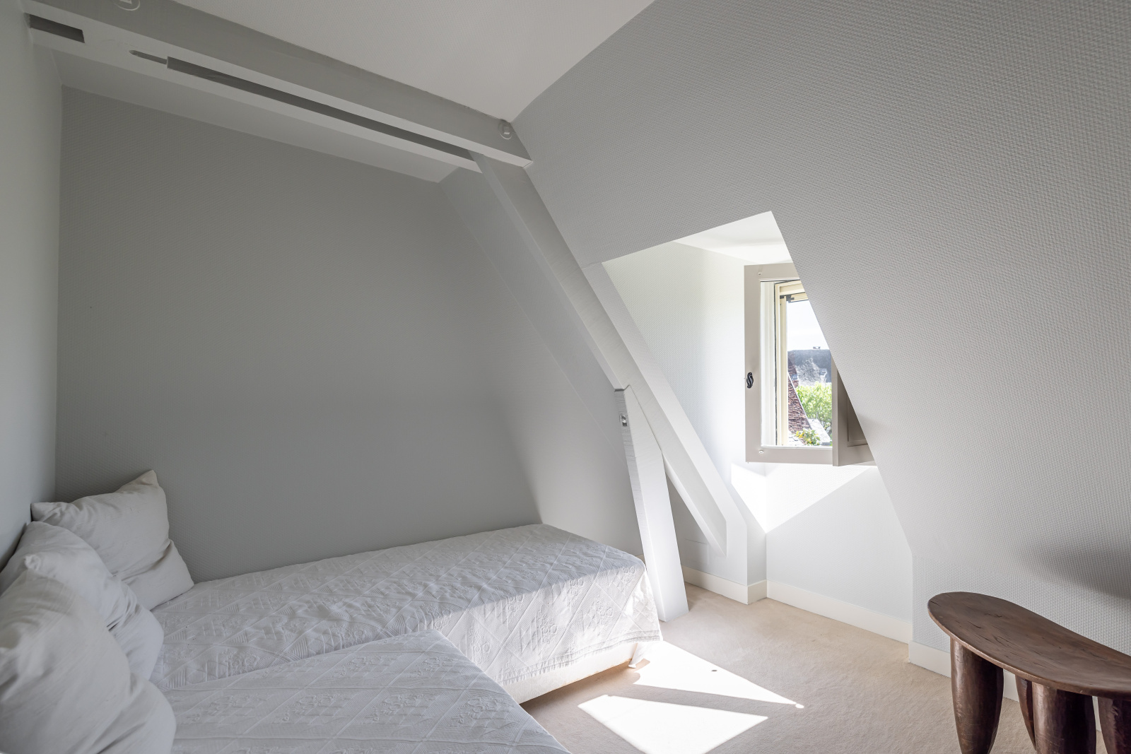 Le premier étage est d'une distribution identique. Les salles du rez-de-jardin font place à deux grandes chambres aux hauts plafonds à la française.