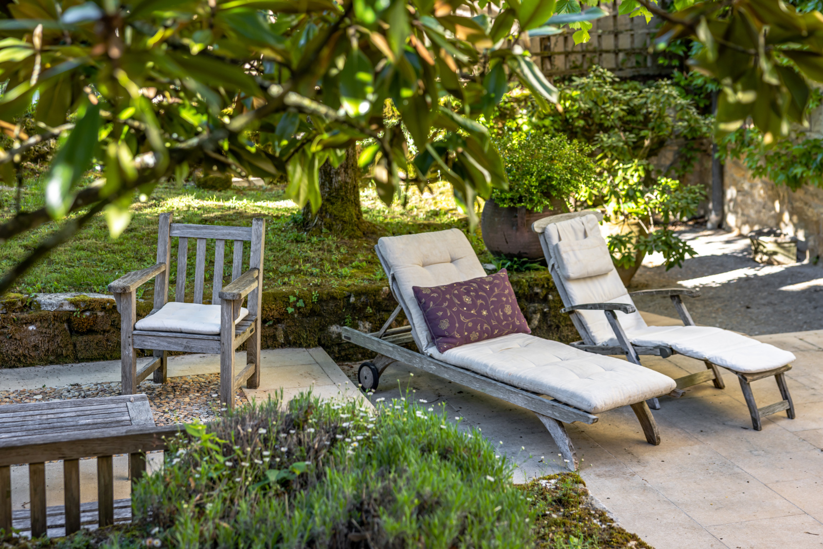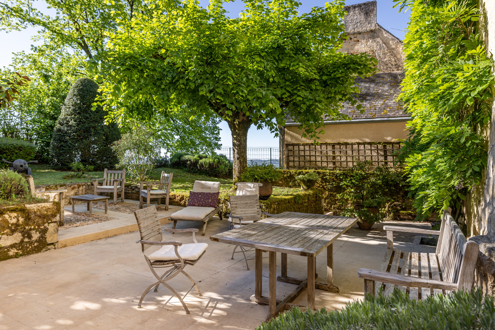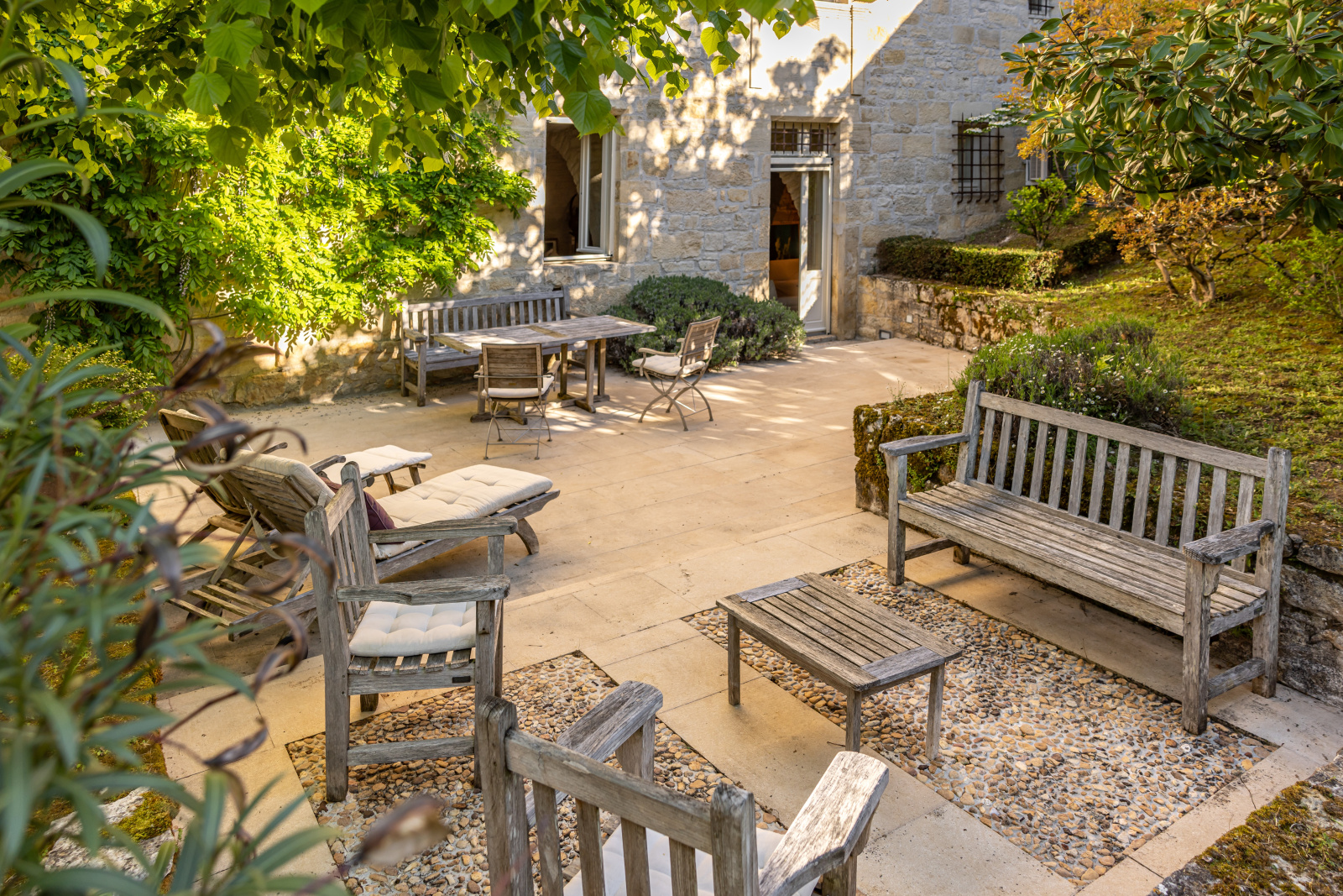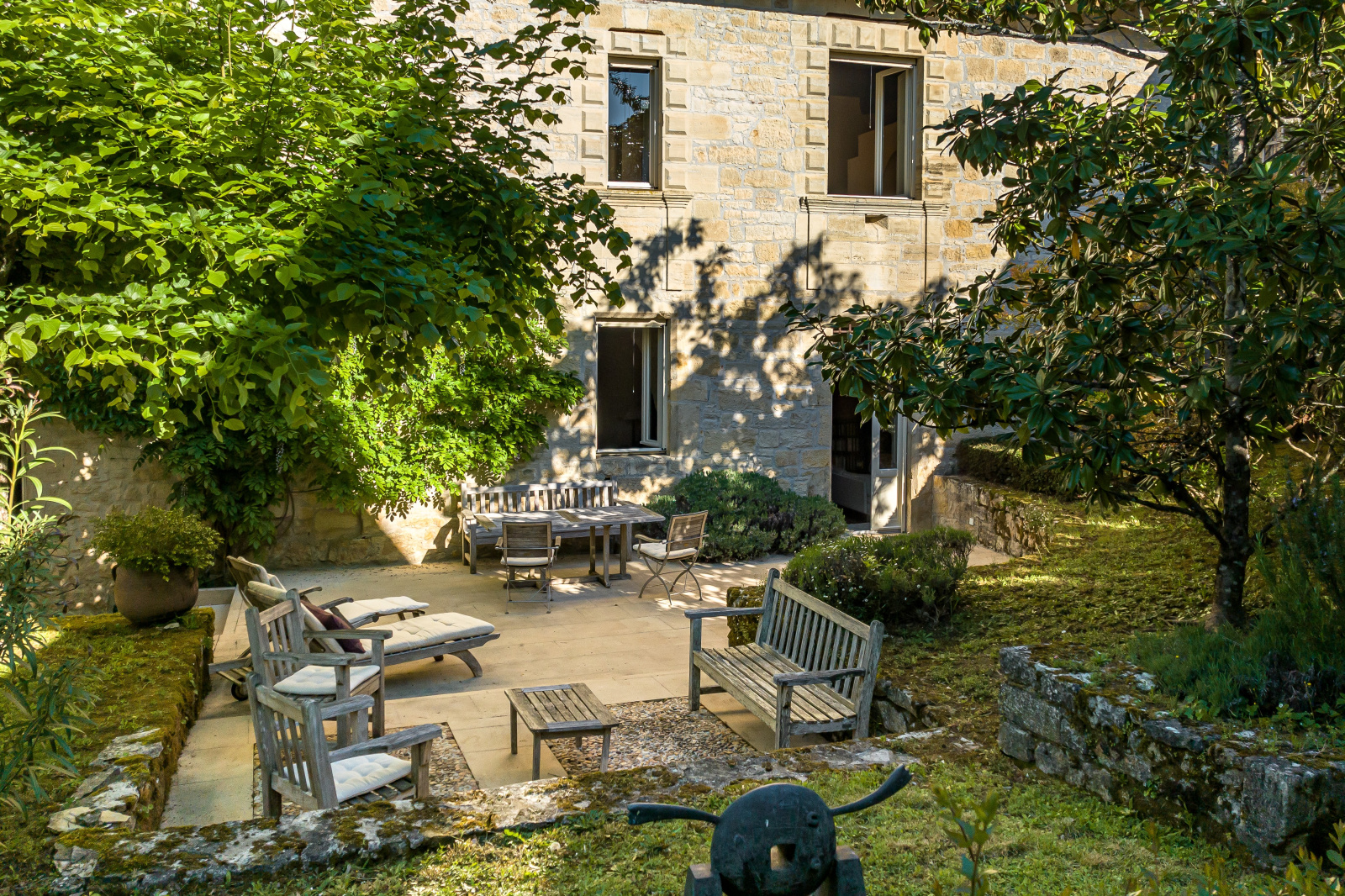 Le jardin clos est parfaitement initimiste. Sa simplicité renforce sa noblesse.