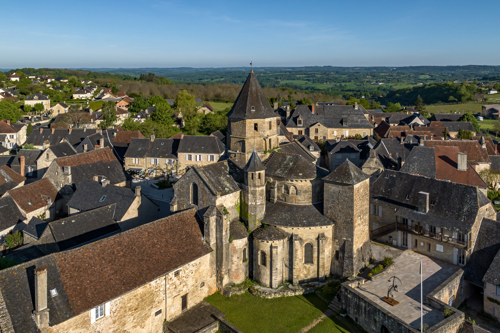 Organisé autour d'un monastère bénédictin bâti par les disciples de Saint-Robert, le village connut de violents affrontements religieux. De cette époque subsiste néanmoins une belle église romane fortifiée du XIIe S et des demeures seigneuriales en pierre de taille dans un paysage vallonné aux confins de la Corrèze et de la Dordogne."