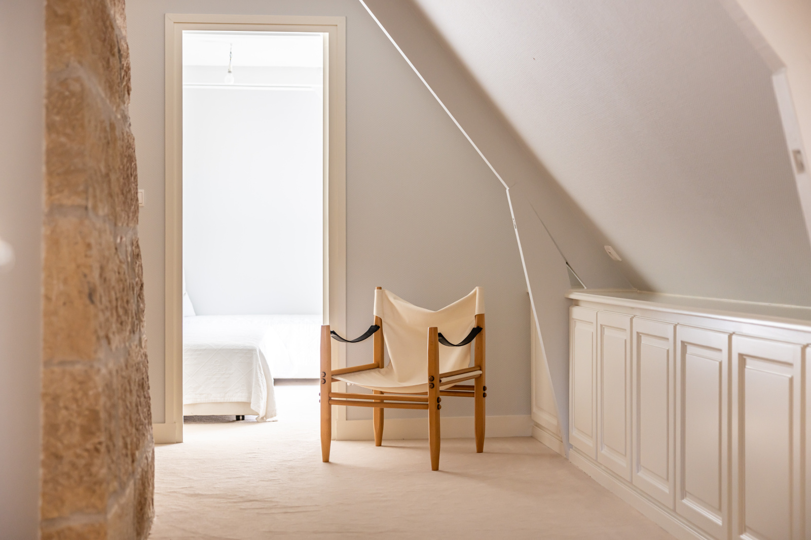 Le second étage, sous combles, a été cloisonné en trois chambres, une salle de bains et des toilettes séparées. Sa rénovation est récente.