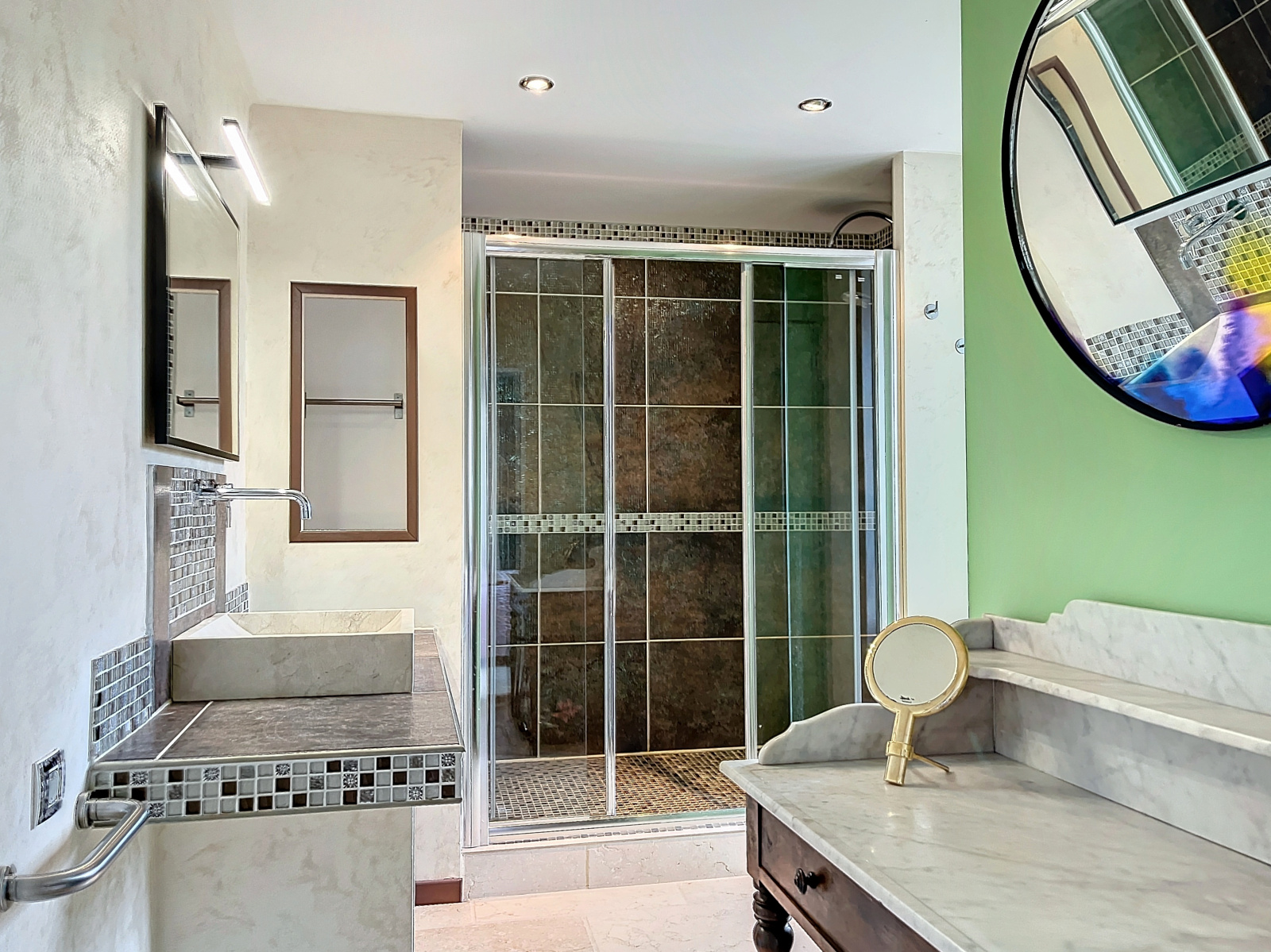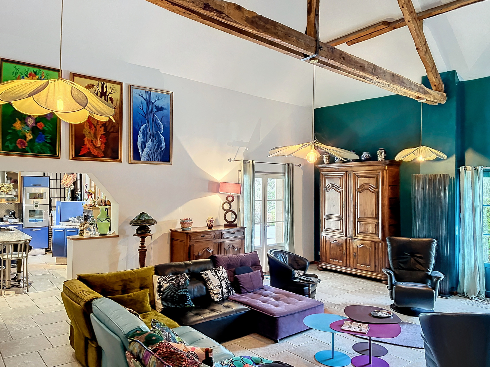 D'une surface habitable de 285 m2 répartis sur 3 niveaux, cette maison offre un vaste salon lumineux avec plafond cathédrale, disposant d'une cheminée avec insert à bois. Ce salon ouvre sur la terrasse couverte, l'espace piscine et le parc, mais également sur la cuisine et le séjour (comprenant la salle à manger, l'espace bar - billard - bibliothèque et le second salon). En rez-de-jardin, une suite traversante, composée d'une chambre à coucher, salle d'eau, dressing et coin bureau ouvre de part et d'autre sur le parc et une petite cour.