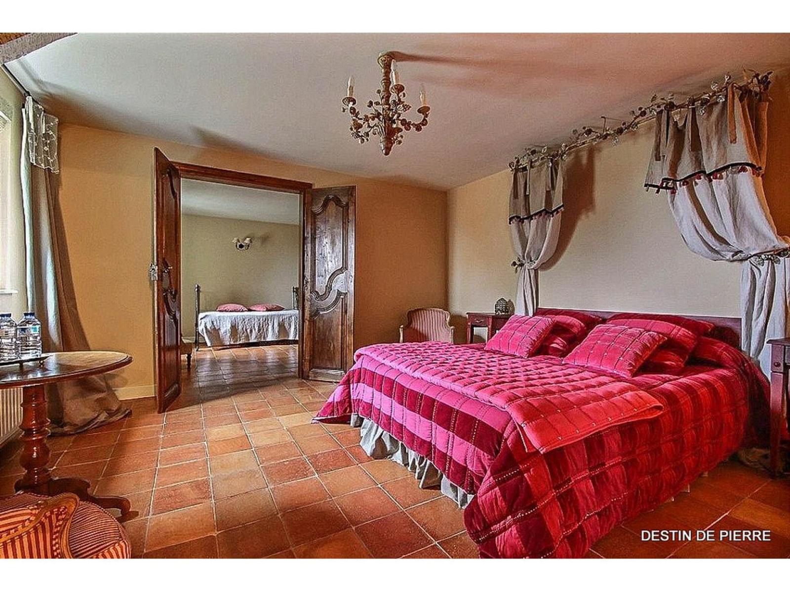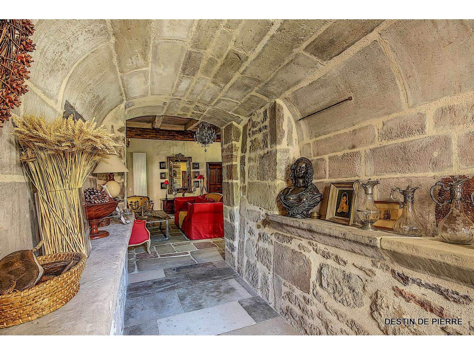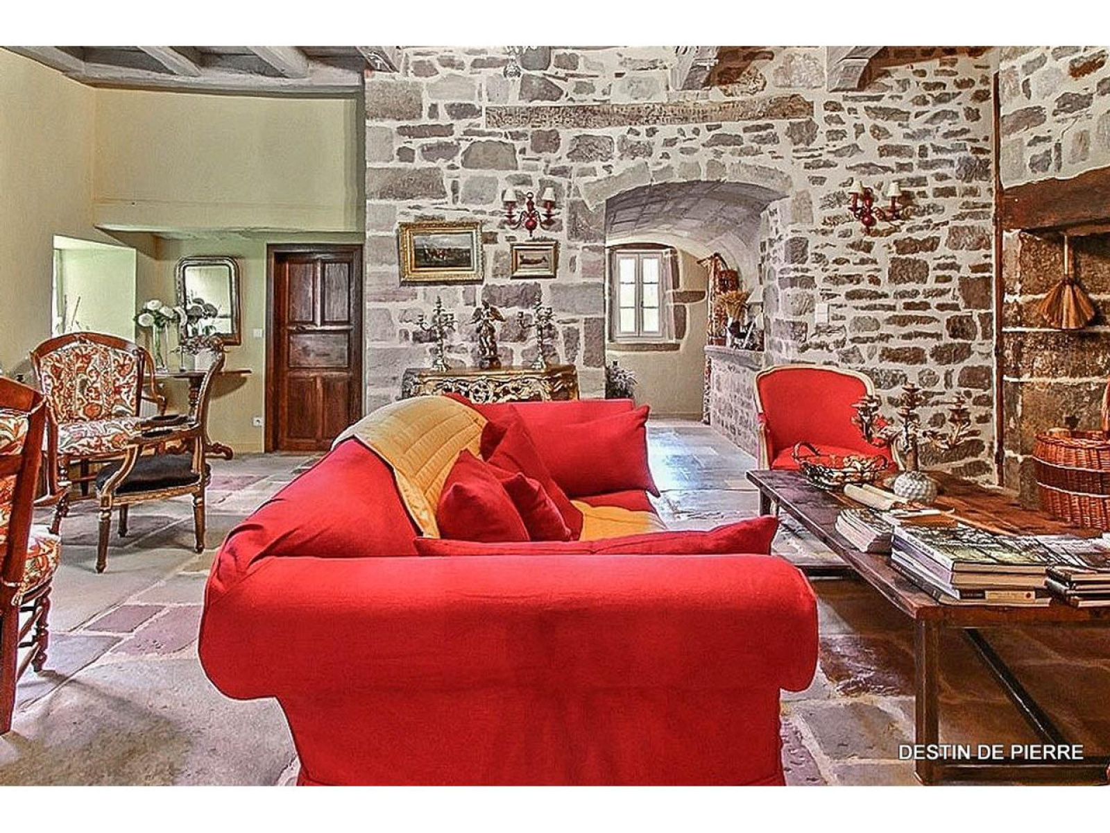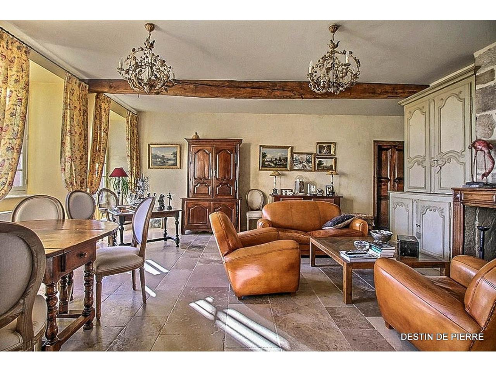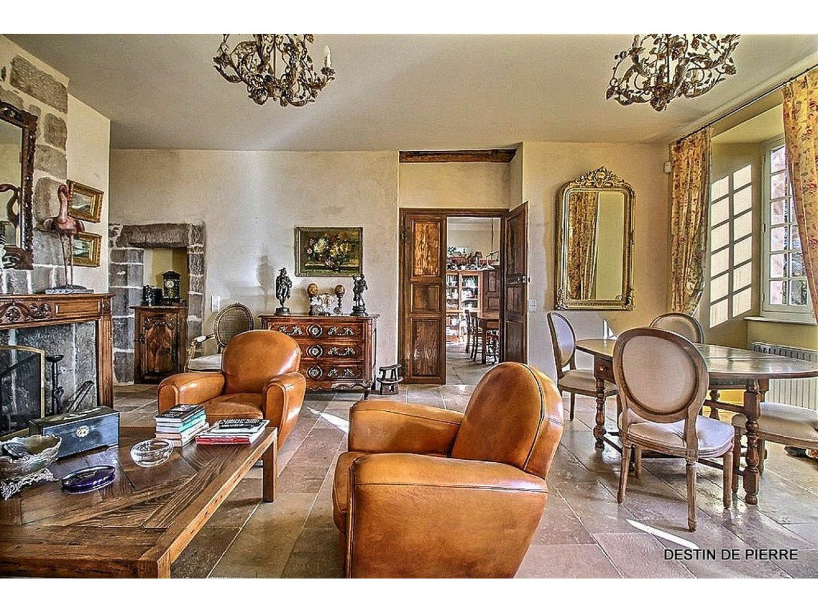 Le manoir d'une surface de 500 m² habitable est constitué de deux grands salons munis pour l'un d'un cantou et pour l'autre d'une cheminée à foyer ouvert ornée de boiseries. Depuis ces salons, il est possible d'accéder à la cuisine qui est équipée et aménagée, à l'arrière cuisine, au cellier et aux caves. Ce niveau dispose également d'une chambre de 16m² et d'une chambre parentale de 47 m² avec salle de bain. L'accès au premier étage peut se faire par l'escalier principal mais également par un escalier dissimulé derrière une porte menant à une chambre de l'étage.