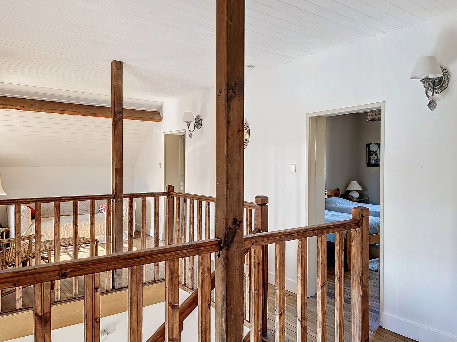 En R+1 : dégagement, chambre à coucher N°1 avec sa salle de bains et WC privatifs, chambre à coucher N°2 avec sa salle d'eau et WC privatifs.