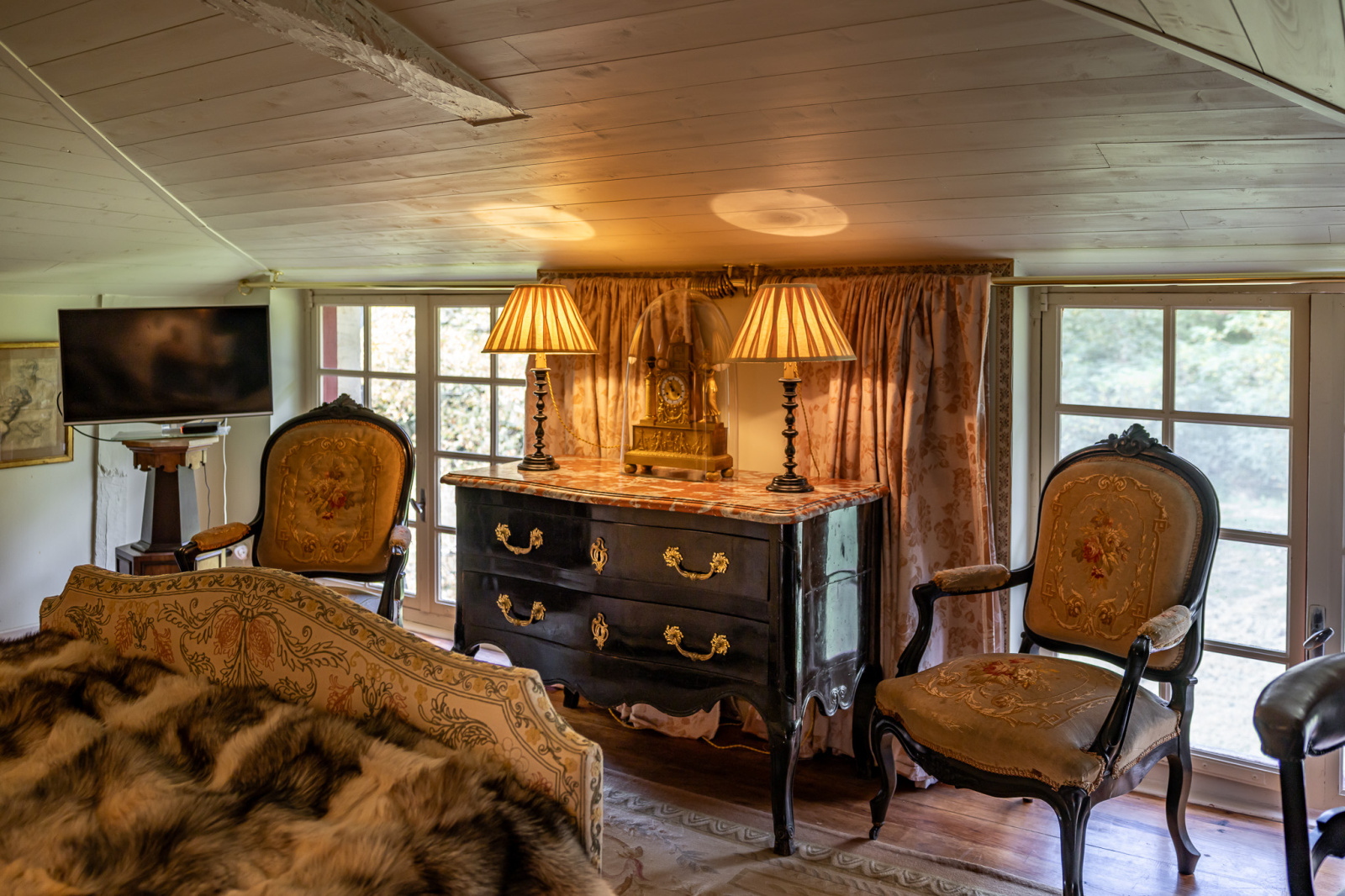 Un second salon d'inspiration XVIIIème offre de beaux volumes de par son plafond cathédrale et une grande luminosité provenant de son côté traversant.