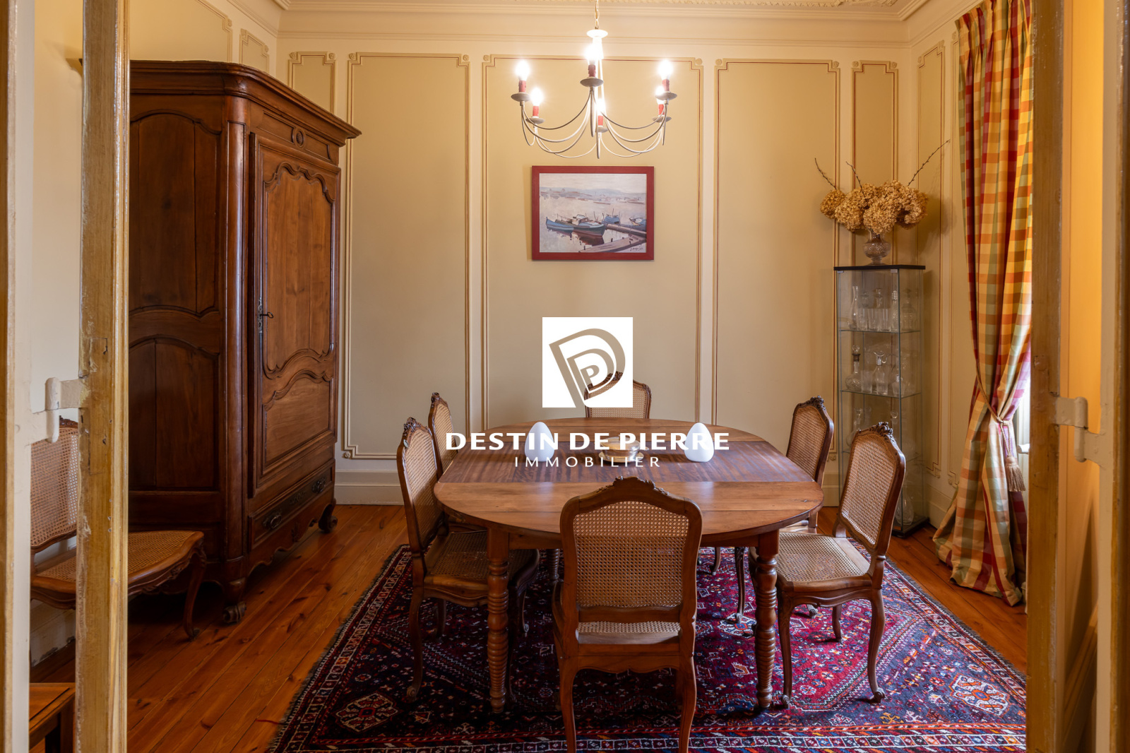 Derrière sa porte en bois massif aux décors moulurés s’offre un univers feutré et privilégié.