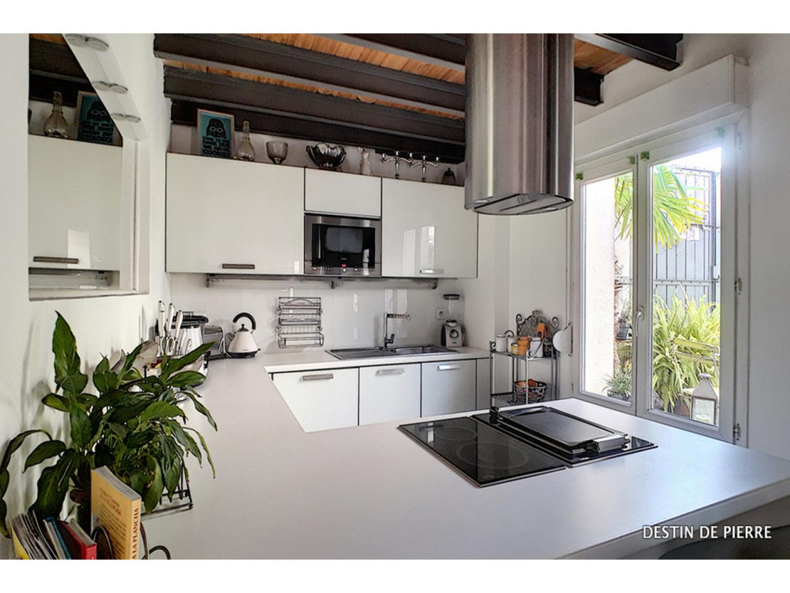 LA MAISON : Cette ancienne grange est désormais une bien jolie maison ! aménagée sur 2 niveaux. Une rénovation respectueuse de l'ancien alliant modernité et design ! Quittez la rue pour entrer et découvrez immédiatement un joli patio arboré de 21m2 qui apporte sérénité et vous donne l'envie de découvrir plus encore la maison. Au choix, entrez par la véranda ou la porte d'entrée ! de toutes façons l'ensemble des pièces du rez-de-chaussée est tout ouvert... et découvrez dans l'ordre que vous choisirez, un charmant et vaste salon/salle à manger atypique (Des marches séparent les ambiances) d'environ 32m2, au sol en béton ciré en partie, l'ensemble accompagné d'une cheminée ! (avec insert) On Adore déjà ! Continuons..., et découvrons la cuisine intégralement aménagée et équipée de 10m2 (Marque Leicht) : Plaque Induction, Plancha, Four, Four à Micro-Ondes, Lave-Vaisselle, Réfrigérateur, Cave à Vin Intégrée... Un espace rangement / buanderie et Wc sont attenants. Un bel escalier en bois suspendu permet d'atteindre l'étage. L'espace couchage avec Climatisation Réversible (date de 2018) est composé d'une chambre parentale de 16m2 ouverte sur une salle d'eau privative de 4m2, (& Dressing) à laquelle s'ajoutent, indépendamment une chambre de 10m2 avec mezzanine créée dans un espace atypique et douillet ; un petit salon y a trouvé sa place et, un espace bureau de 14m2 aux poutres apparentes (avec mezzanine aussi) adaptable en chambre. Parfait pour accueillir des adolescents. Une seconde salle d'eau est attenante au petit salon. C'est Charmant ! Le sol est en parquet (en chêne) dans sa totalité pour l'étage.