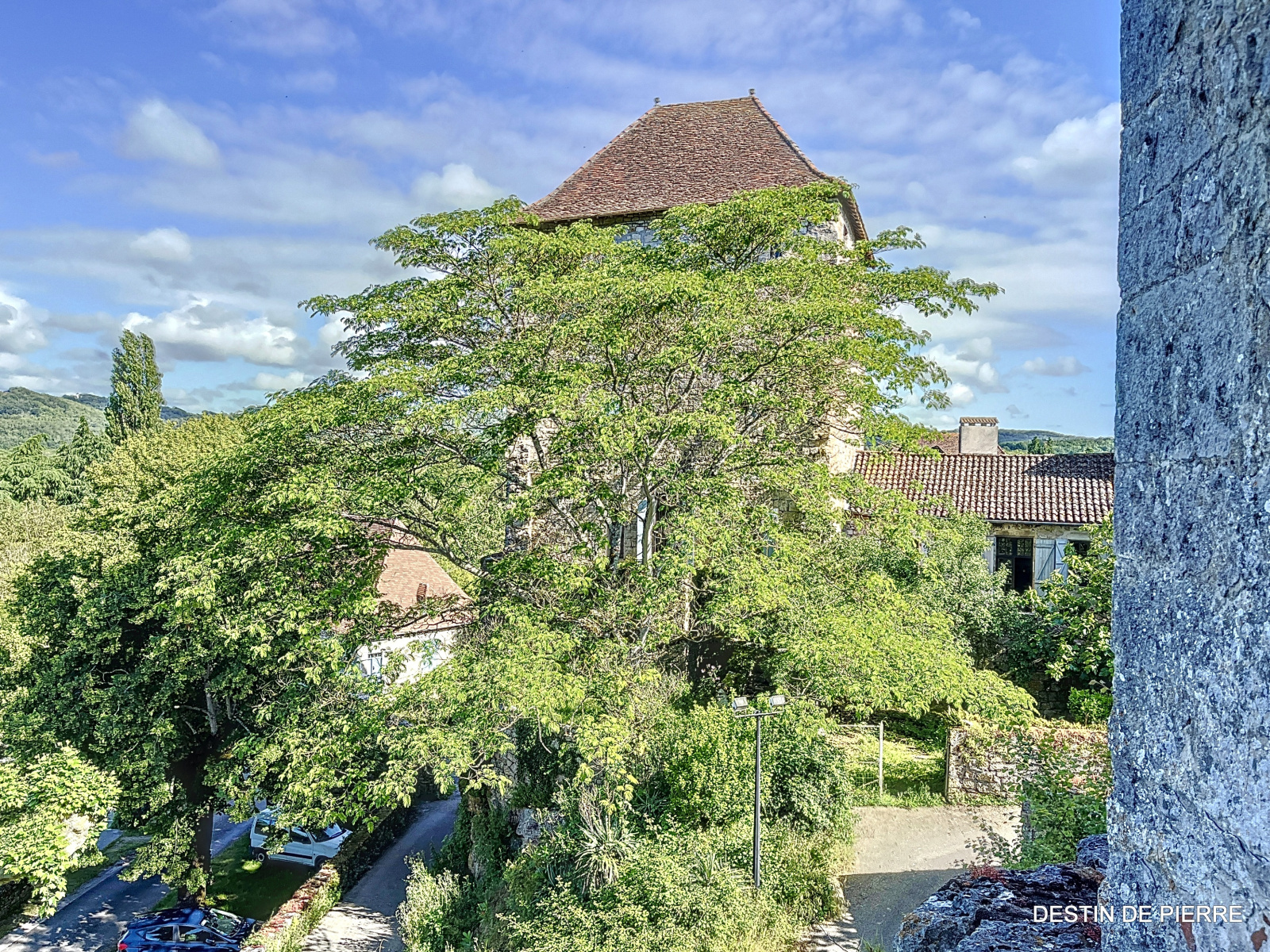 L'ancien castrum médiéval dans lequel s'insère la propriété, dominant les environs, constitue un écrin offrant une superbe vue sur le village, la vallée de la Dordogne et la campagne proche.