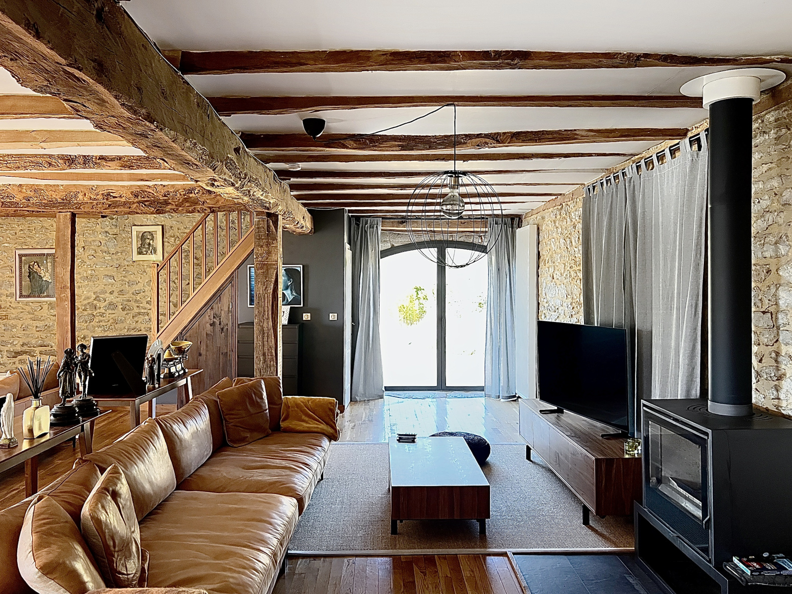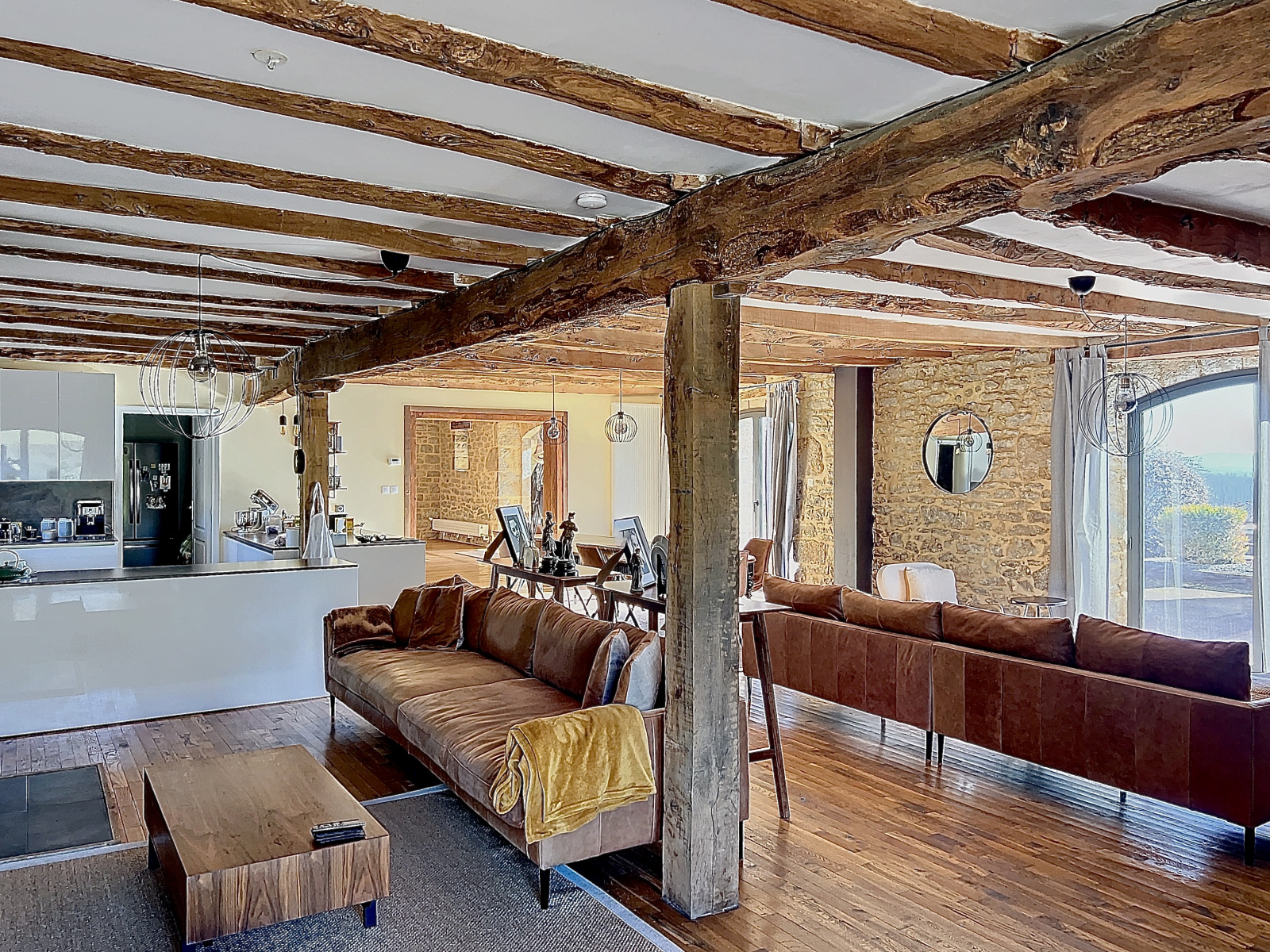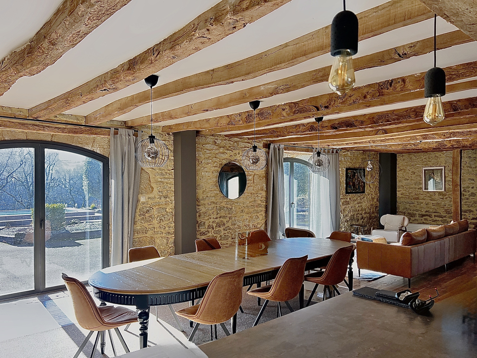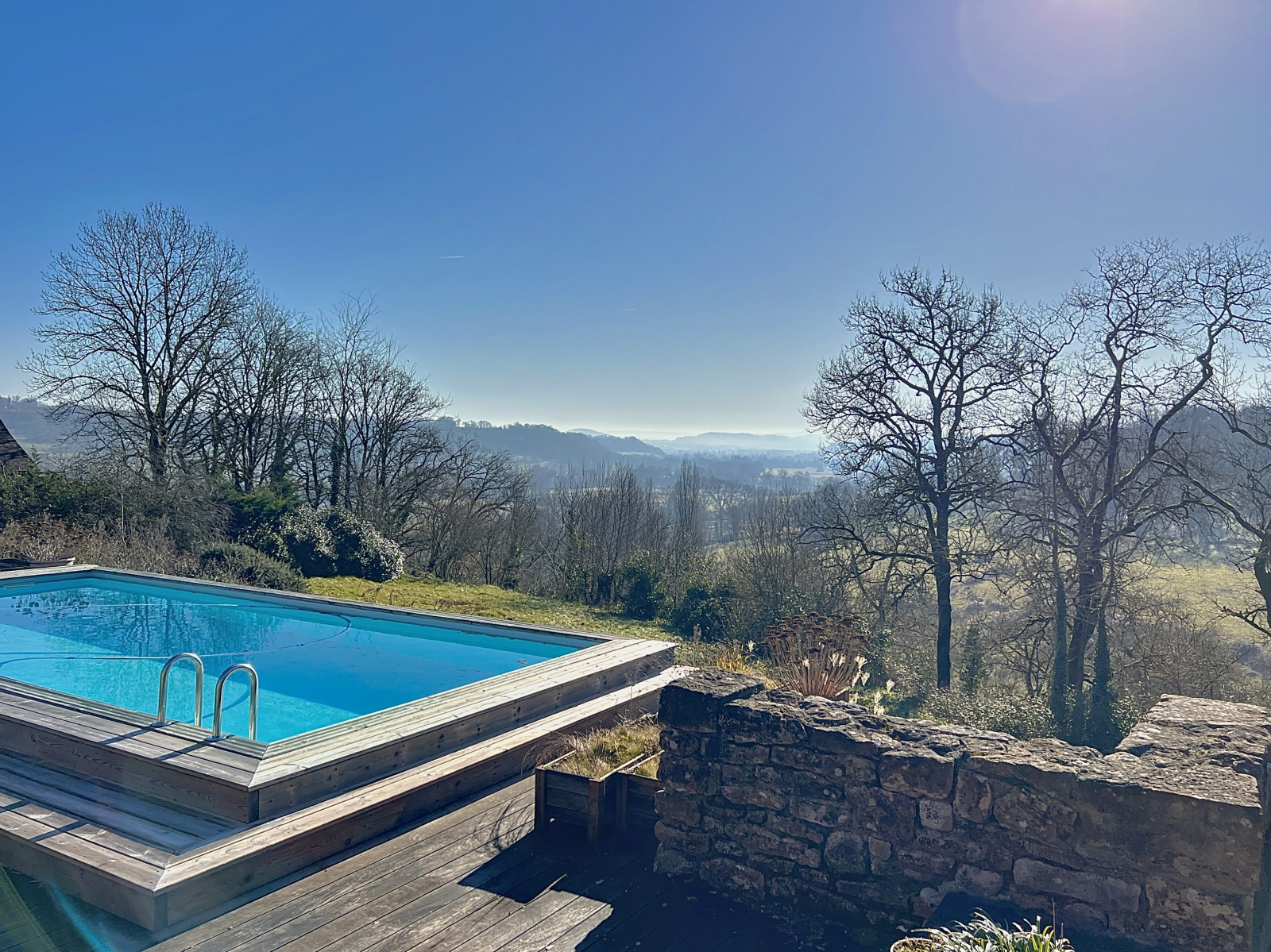 Le tout se complète d’un extérieur aménagé avec sa piscine, pergola et une vue dégagée sur la campagne environnante.