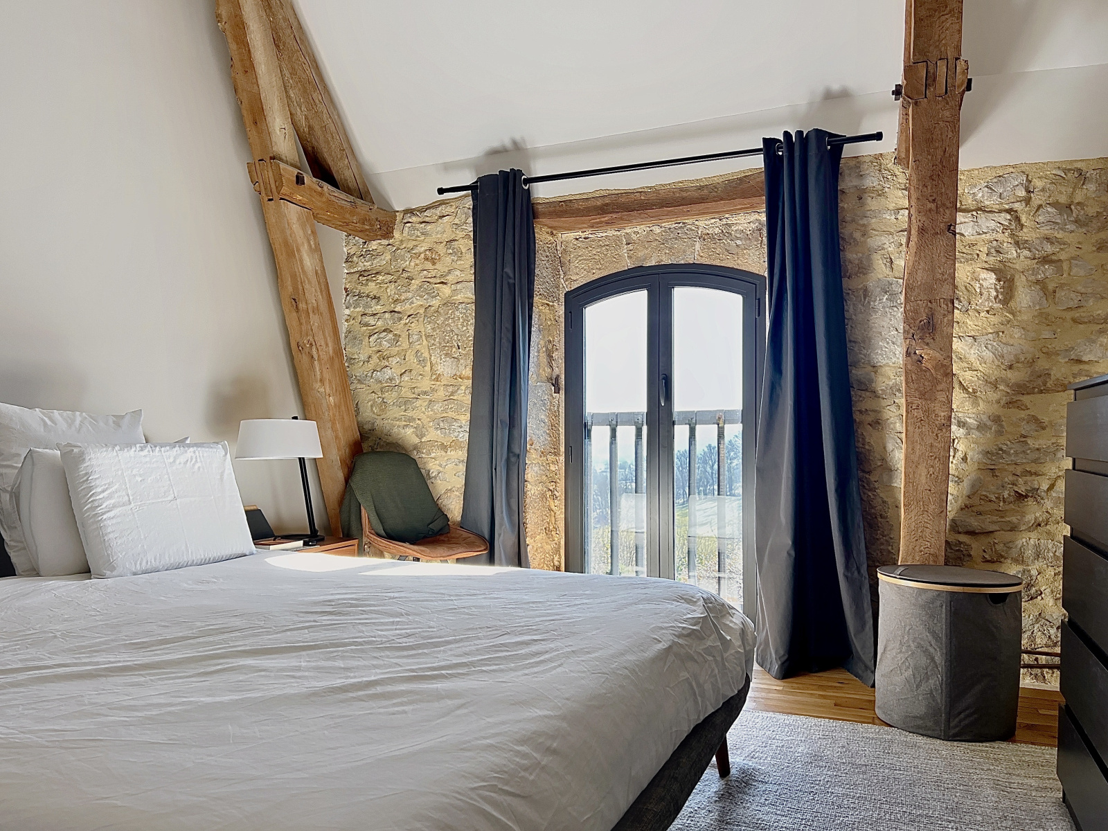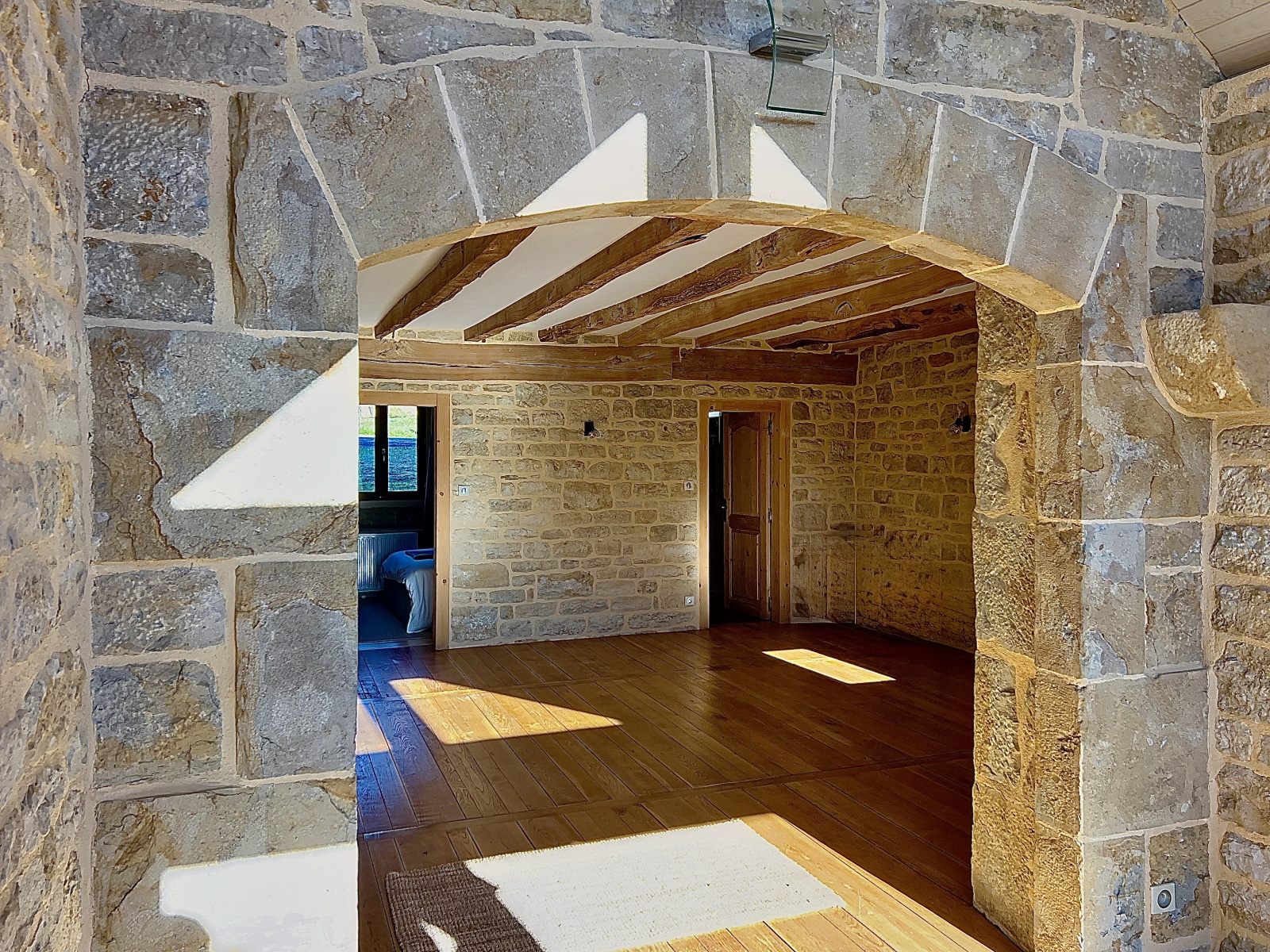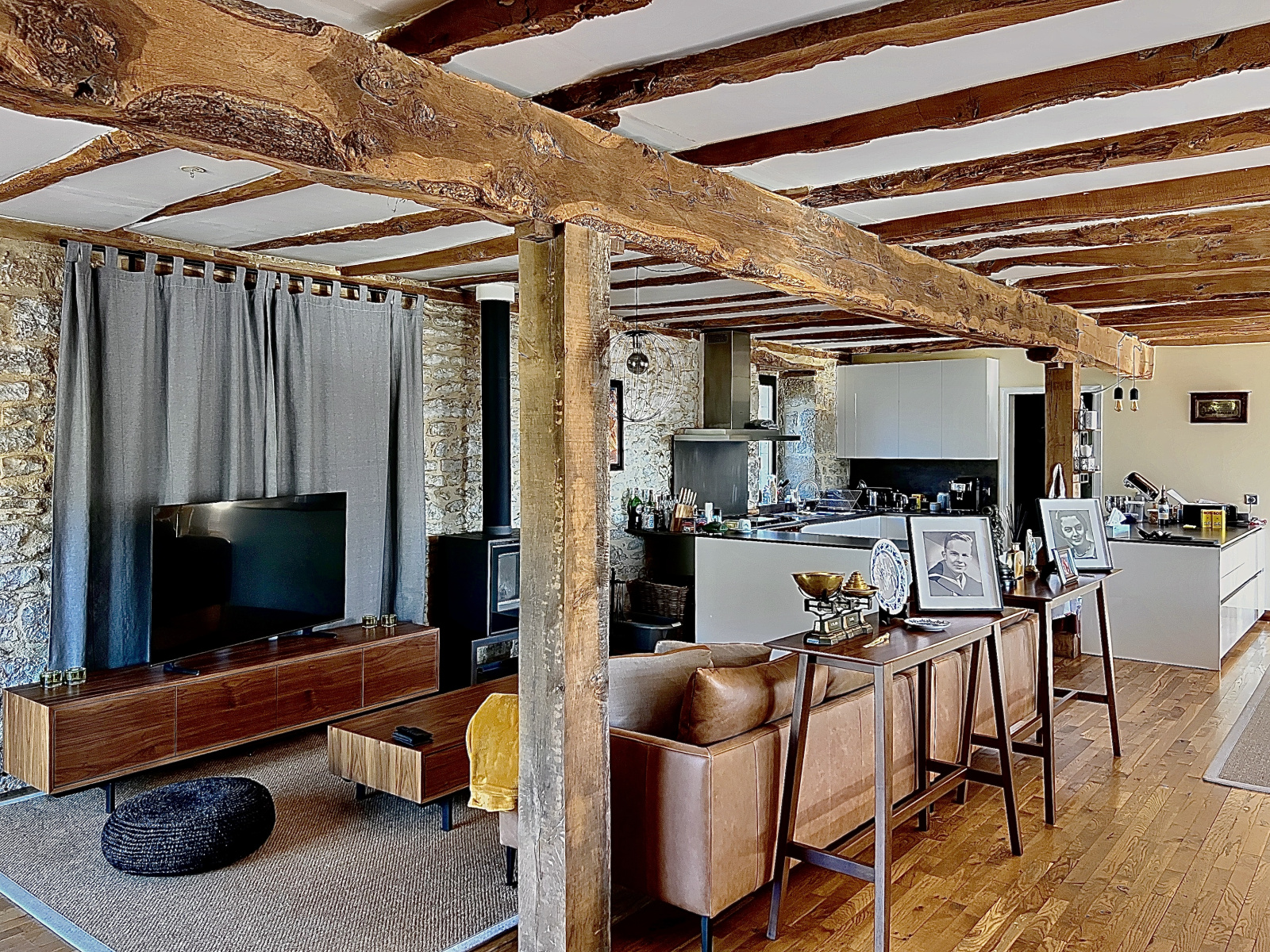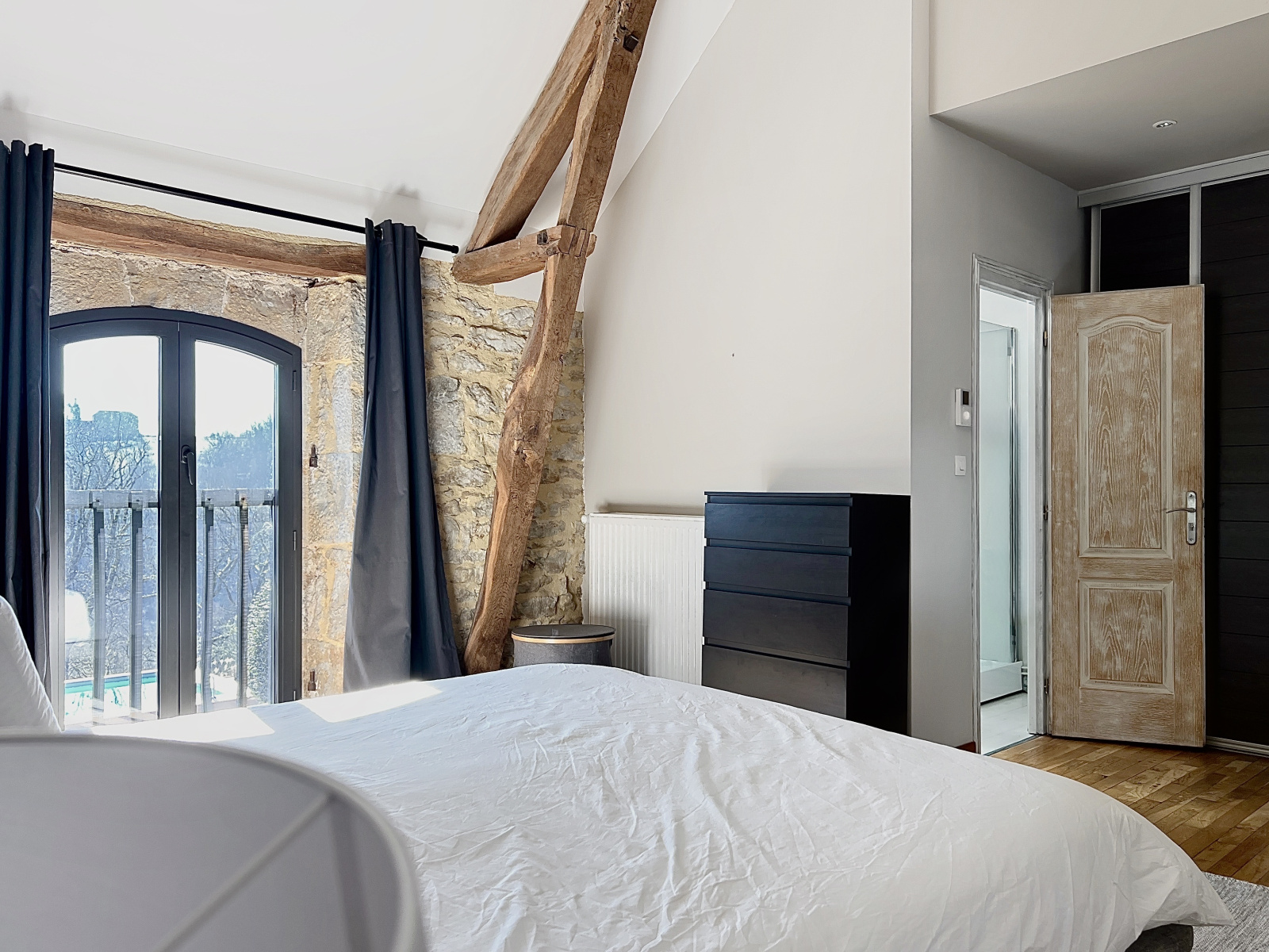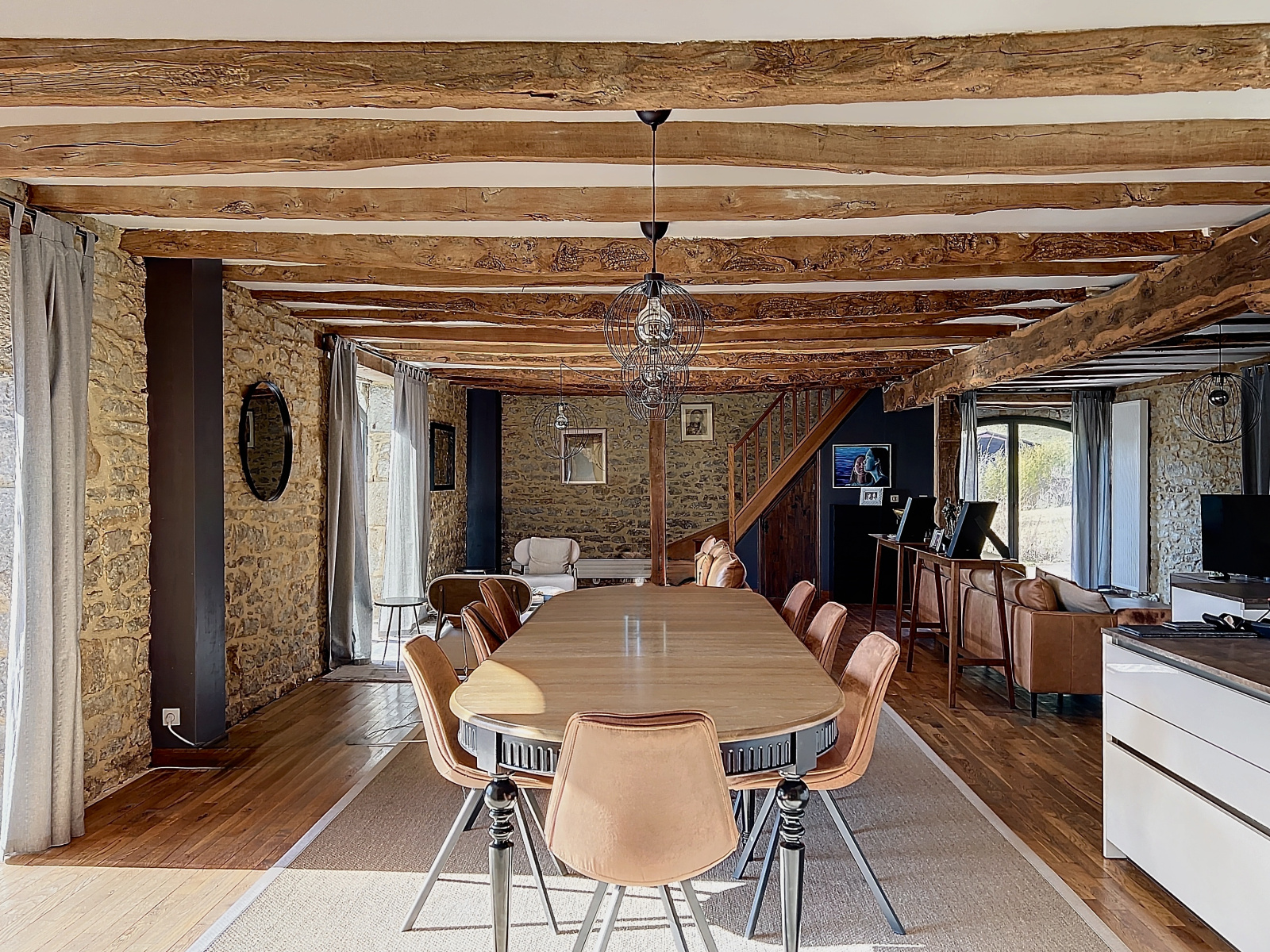 Le tout se complète d’un extérieur aménagé avec sa piscine, pergola et une vue dégagée sur la campagne environnante.