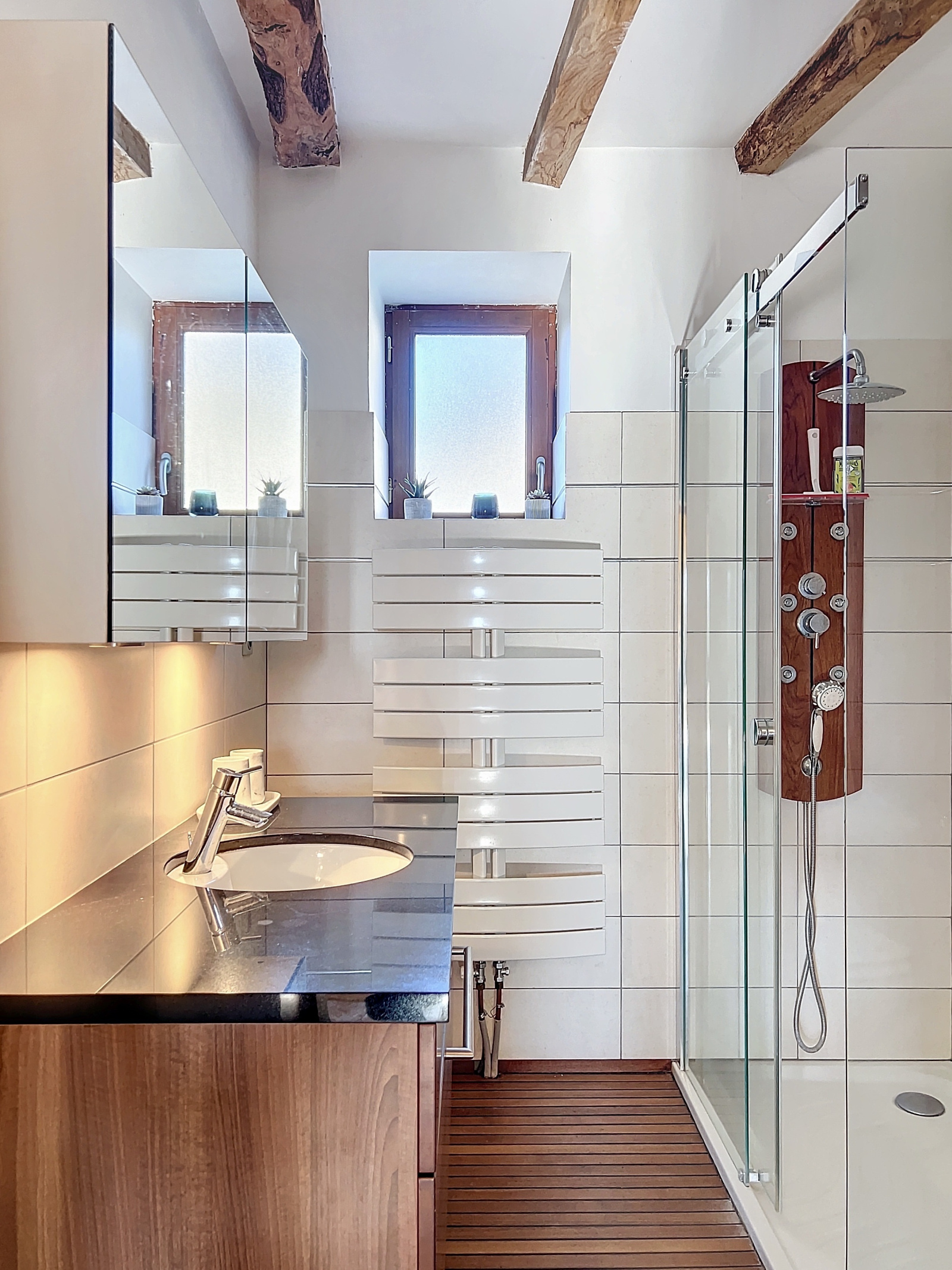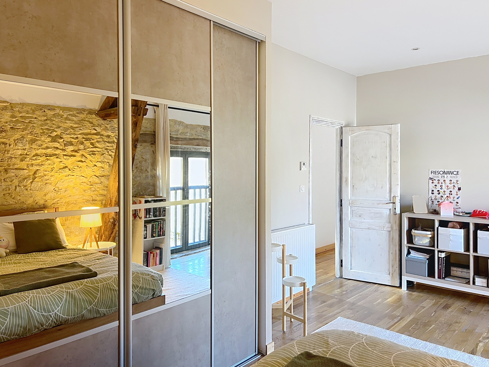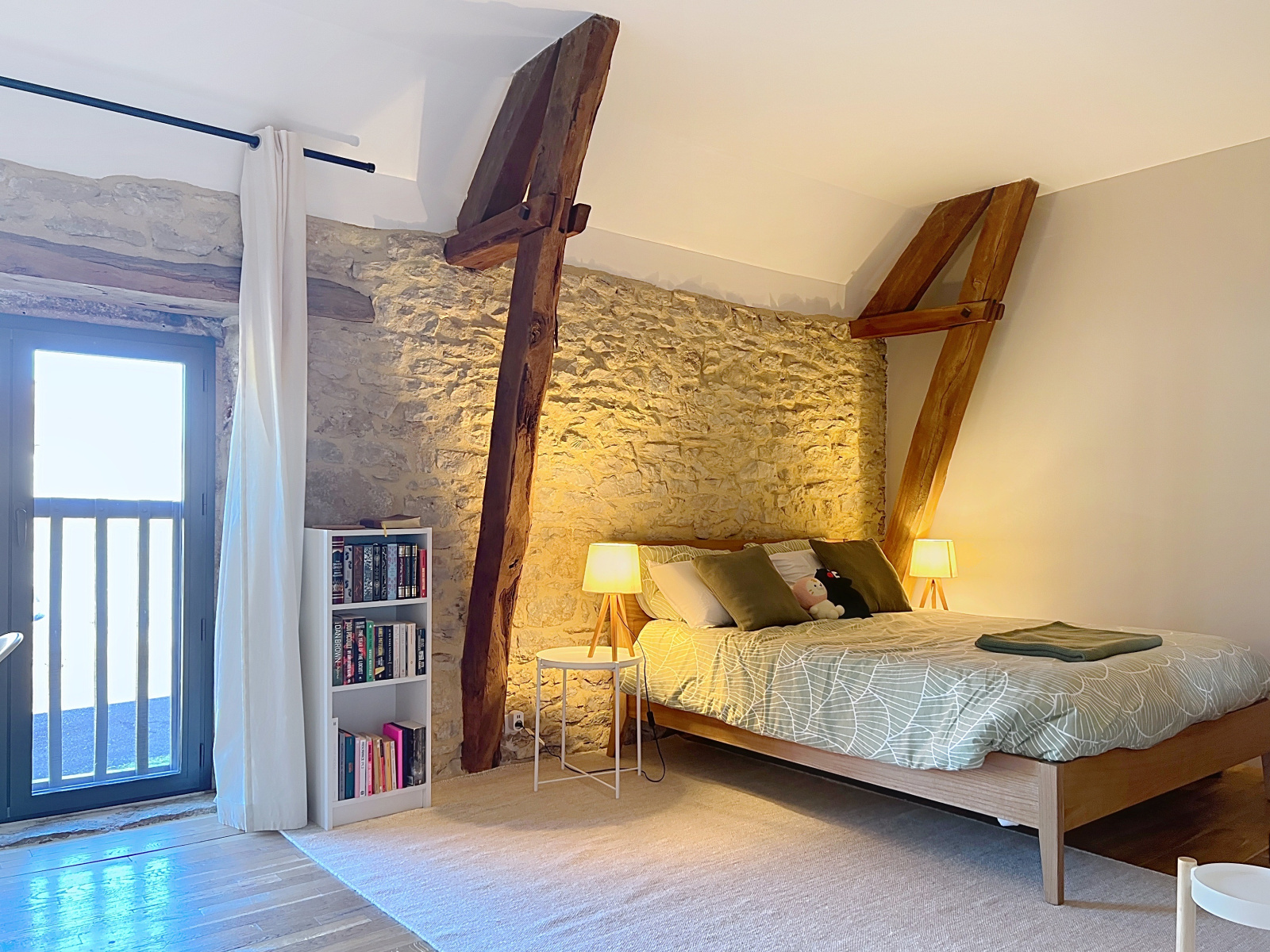 L’étage est réservé à l’espace nuit, comportant deux chambres et une salle de bains avec WC.