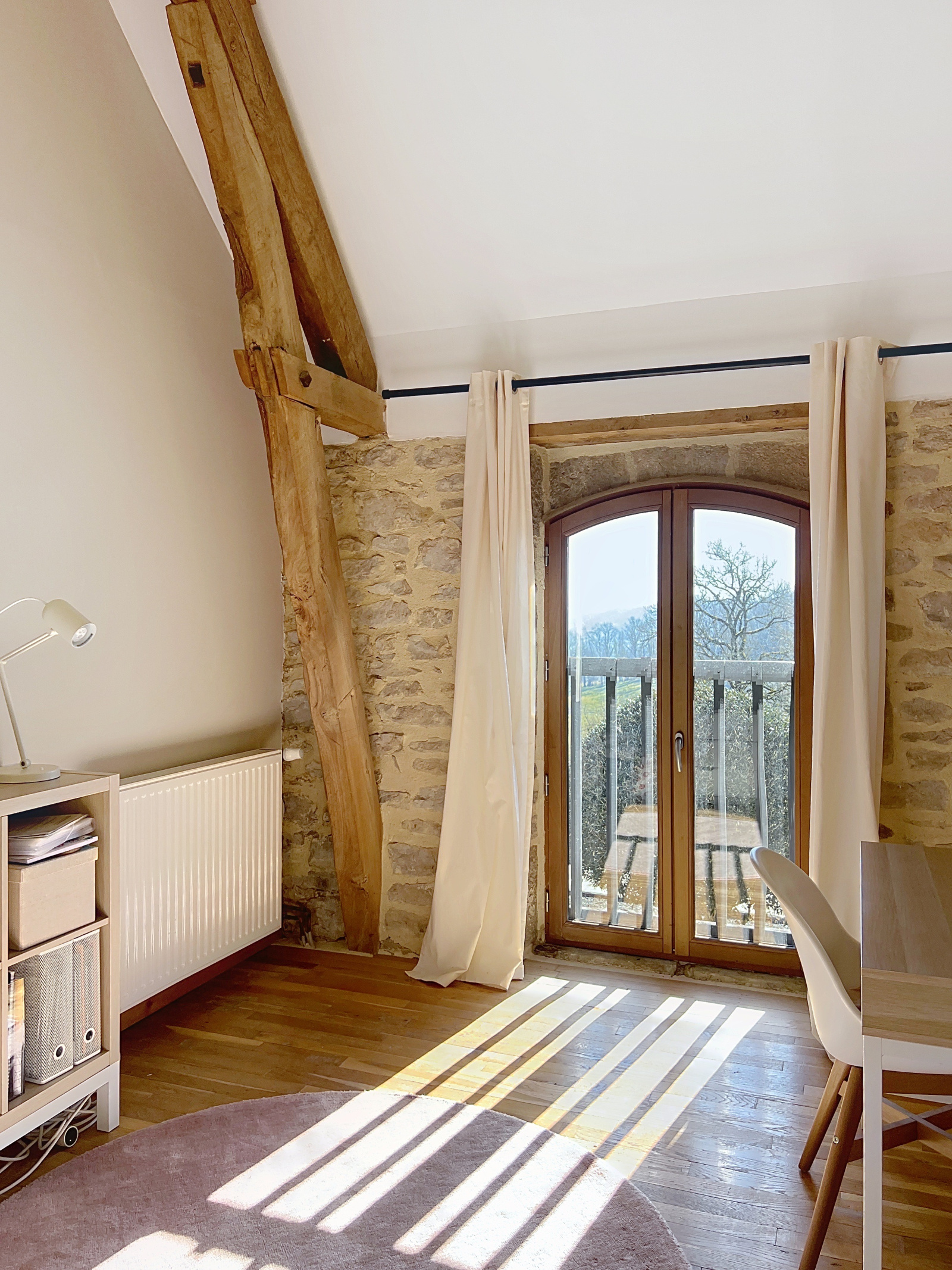Cette ancienne grange de pays rénovée en maison à usage d'habitation se situe dans un hameau du Nord du Lot, proche de Turenne.