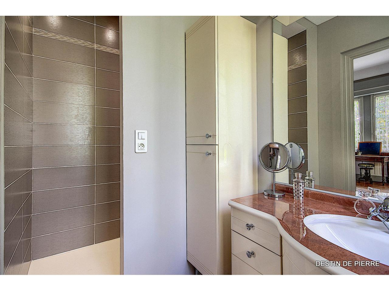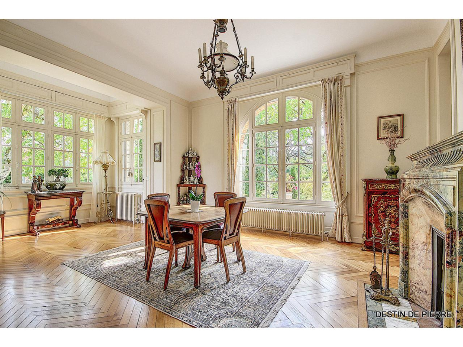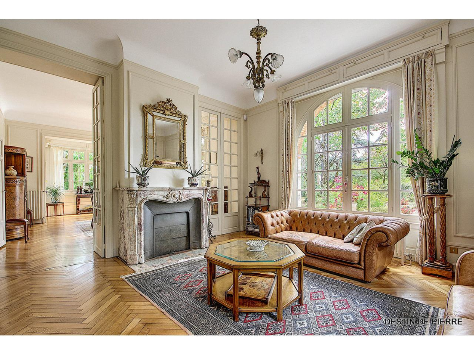 LA VILLA : Poussez la belle porte d'entrée vitrée de style Art Déco et ressentez déjà l'ambiance chaleureuse de la Villa ; le hall d'entrée de 25 m2 (hauteur sous plafond de 3,45m) annonce tout de suite le ton de la visite et que vous aurez envie de découvrir rapidement en passant de pièce en pièce. Le sol au beau motif est en grès cérame. Découvrez ensuite le magnifique salon lumineux (24m2) au parquet en chêne avec une première cheminée en marbre (Car chaque pièce dispose de sa cheminée au style différent). Poussez une nouvelle porte en bois et en verre biseauté ! On Adore ... et entrez dans le séjour d'environ 30m2, parquet toujours en chêne et cheminée en marbre d'un autre style. Un bow-window dans ce séjour permet de descendre dans le parc et de rejoindre la piscine... Le 1er + : une très belle luminosité à l'exposition plein sud pour ce salon/séjour avec la vue sur le parc arboré. Passons au 2ème + : la cuisine (de toute évidence très chic !) qui s'ouvre dans la continuité sur une véranda gracieuse et suspendue, surplombant la longue piscine. Vous serez fasciné par ce lieu ! Donc, la cuisine est totalement aménagée, toute équipée, et indépendante (34m2), de marque italienne. Cuisinière/Piano de couleur Bordeaux, marque Falcon, comprenant 3 fours. Lave vaisselle marque Siemens. Grand Billot central (avec prises intégrées). Les plans de travail sont recouverts d'une résine Dekton résistante à 1200 degrés et la liste est encore longue de tous les équipements dans cette pièce. Le 3ème + : Une majestueuse cheminée ouverte en pierre trône là au milieu de la cuisine. Le sol est identique à celui du hall d'entrée pour harmoniser l'ensemble jusqu'à la véranda. La véranda aux grandes baies vitrées surplombant une grande terrasse et la piscine n'est grevée d'aucun vis-à-vis. Elle est en double vitrage, chauffée et climatisée. Une porte permet là encore d'accéder au parc et à la piscine. Avant de monter aux étages, découvrez un bureau (22m2) qui pourrait devenir une chambre accompagnée d'une salle d'eau. (Idéal en rez-de-chaussée). Une nouvelle cheminée Art Déco est présente avec un poêle à bois. Le parquet quand à lui est en châtaignier d'origine. Un premier Wc/Lavabo est attenant au hall d'entrée. L'ESPACE NUIT au premier étage, desservi par un bel escalier en chêne d'origine, donnant sur un couloir qui assure la communication entre les pièces propose quatre chambres ; - Chambre 1 de 21m2 possède son dressing et sa salle d'eau avec lavabo & douche. - Chambre 2 de 25m2 à la possibilité d'avoir sa salle d'eau. - Chambre 3 de 24m2 possède sa jolie salle d'eau avec lavabo & douche (4m2), une porte fenêtre donne l'accès sur un balcon. - Chambre 4 de 23m2 à en + de sa salle d'eau avec lavabo & douche son Wc privé. Le sol est en pin sur l'ensemble de l'étage. Chaque chambre possède là encore sa cheminée ! Un troisième Wc/Lavabo est attenant au couloir. Le SECOND ETAGE vous réserve une très Belle Surprise ; Espace totalement privé ! (environ 60m2). Le NIVEAU INFERIEUR de la villa est idéal en été en mode Vacances, car il possède une cuisine aménagée et équipée, laquelle a un accès direct sur la terrasse et la piscine.